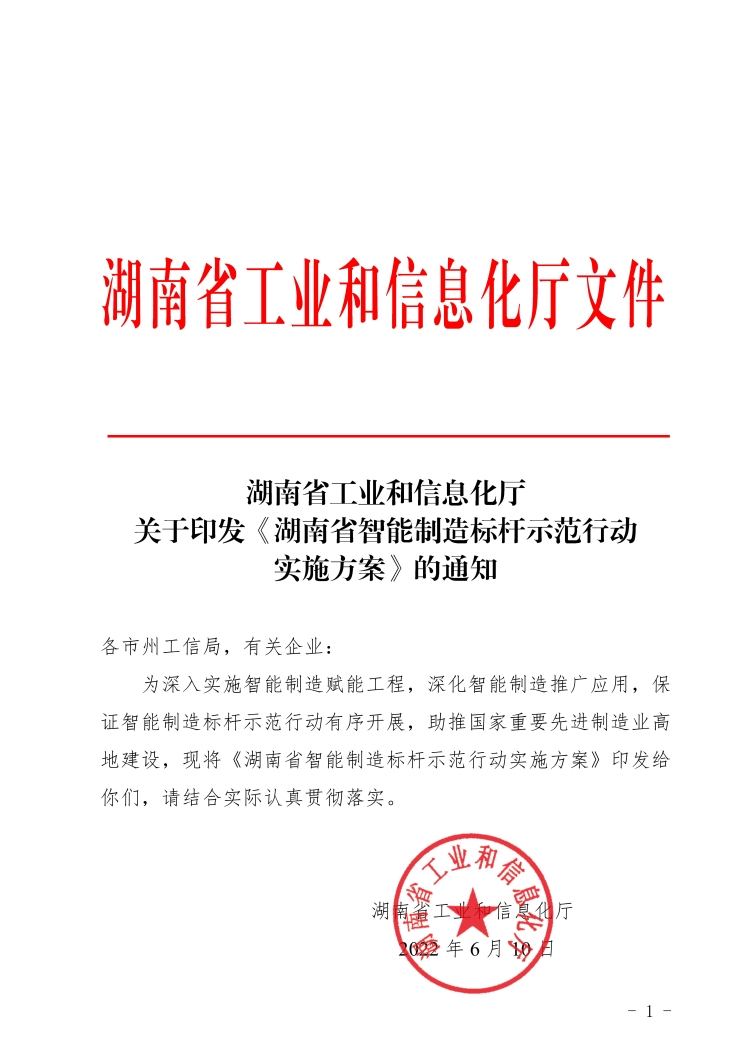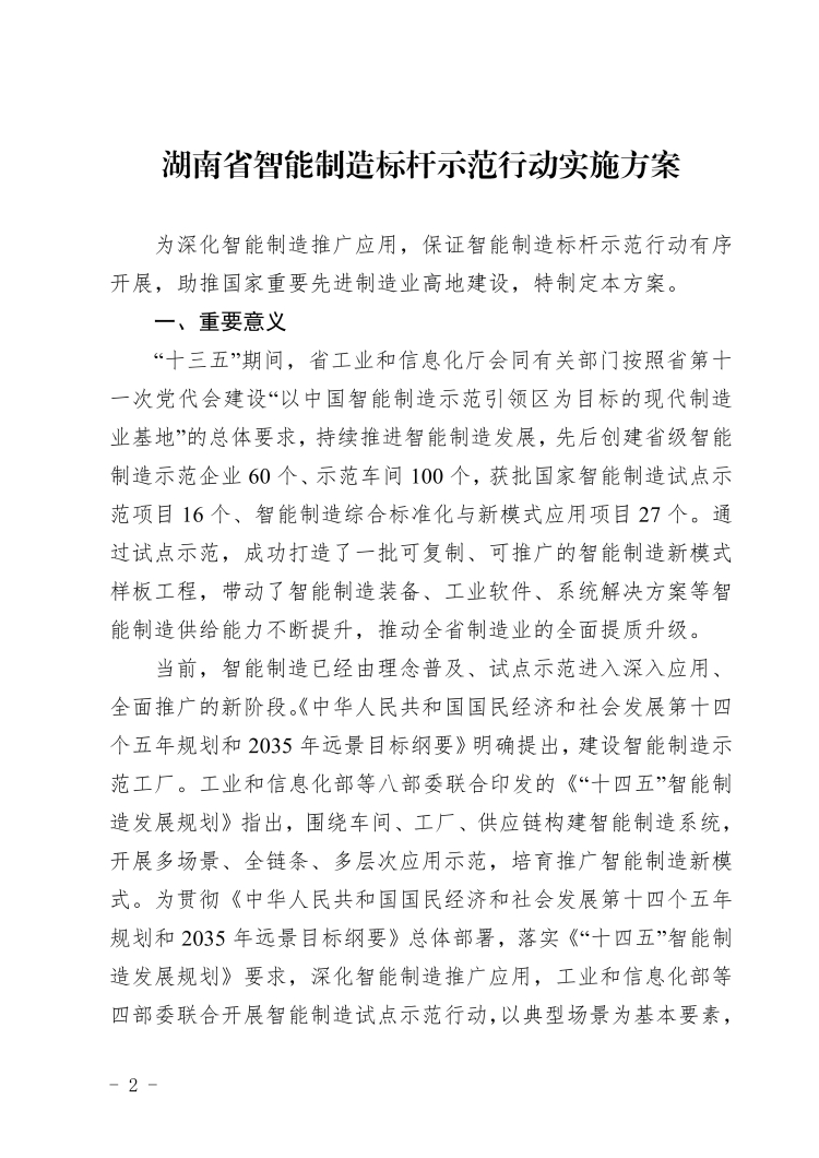 关于印发《湖南省智能制造标杆示范行动实施方案》的通知