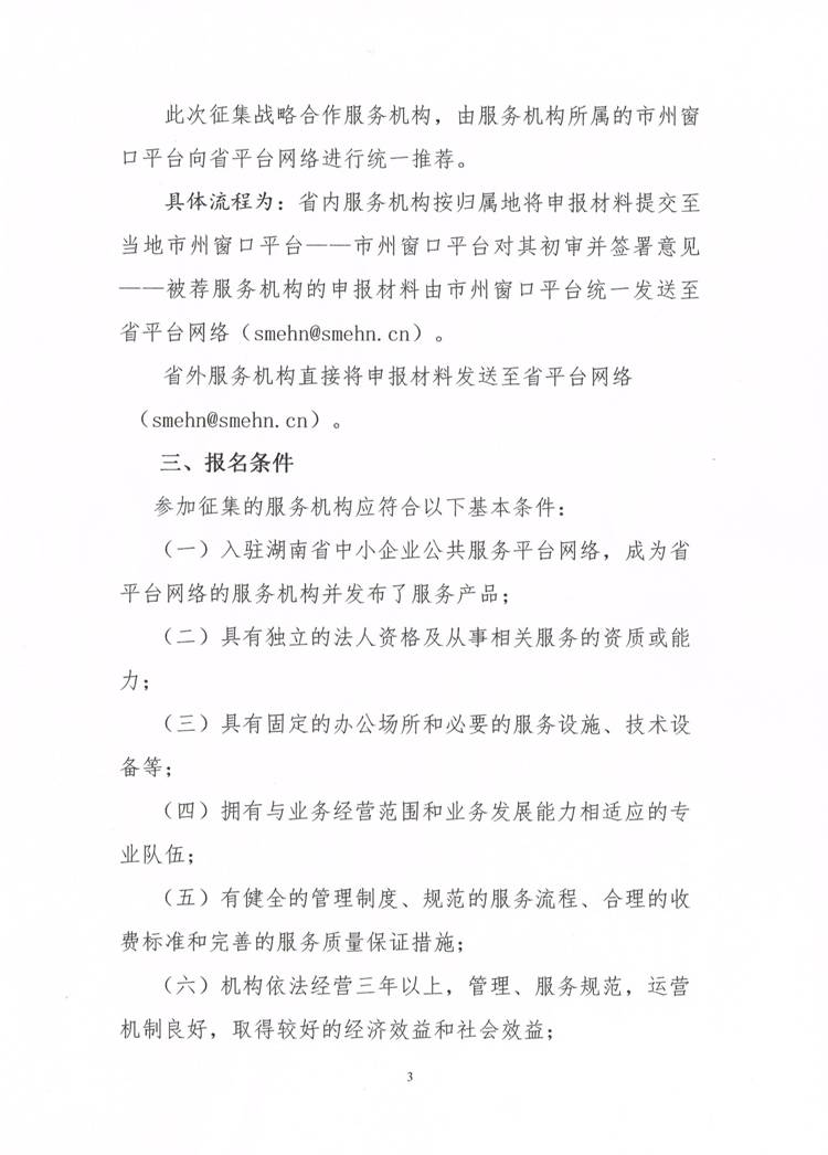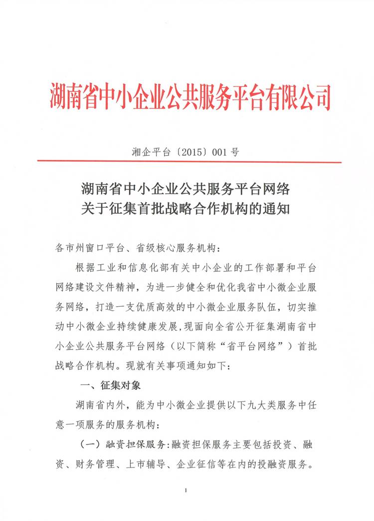 关于转发《湖南省中小企业公共服务平台网络关于征集首批战略合作机构的通知》