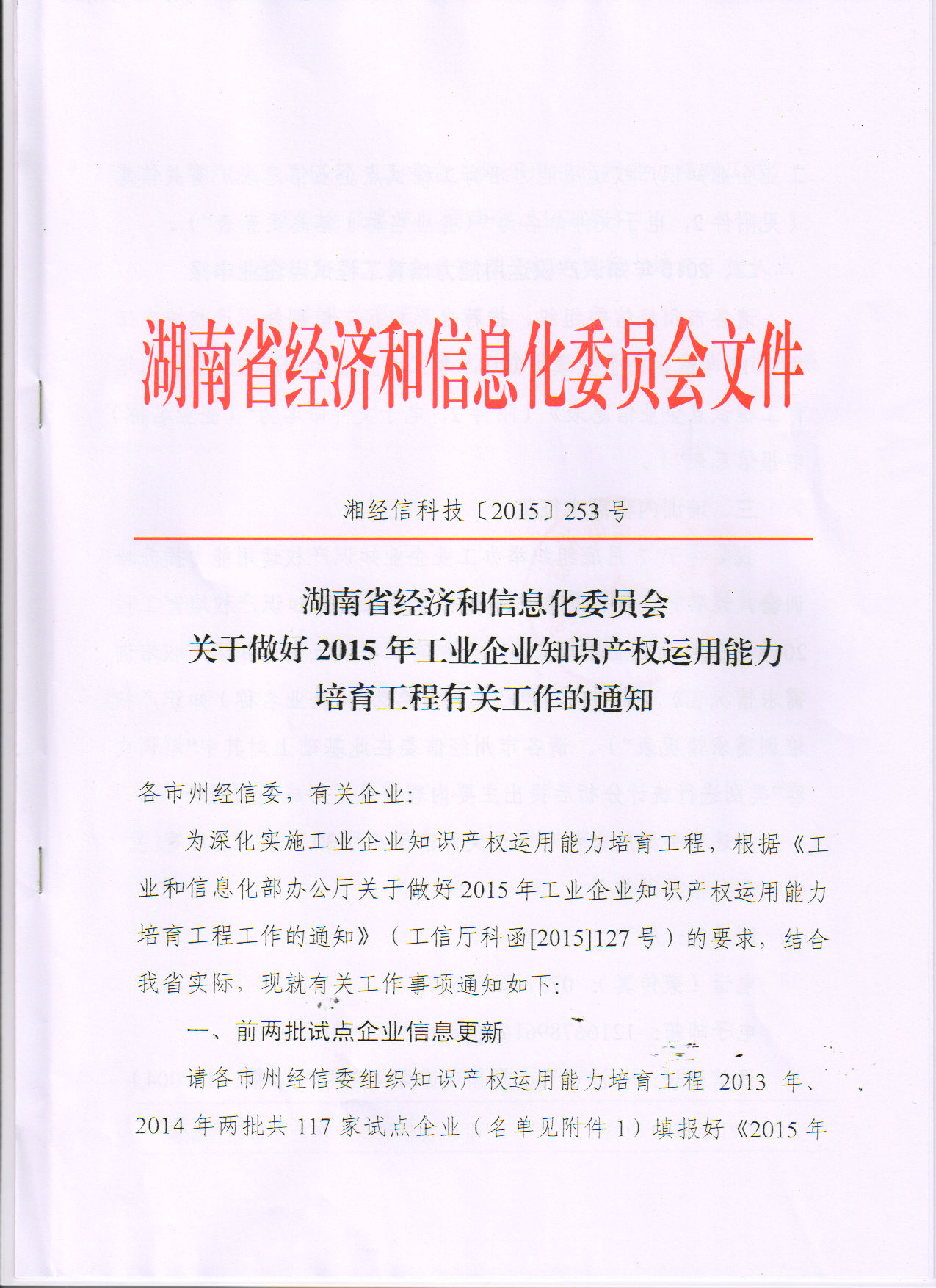 附件1 历年知识产权试点企业名单(117家)(湘经信科技[2015]253号).doc