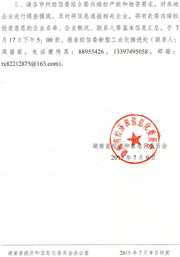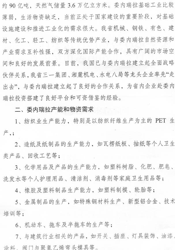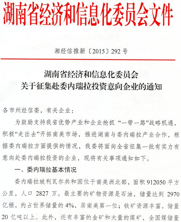 转发湖南省经济和信息化委员会《关于征集赴委内瑞拉投资意向企业的通知》