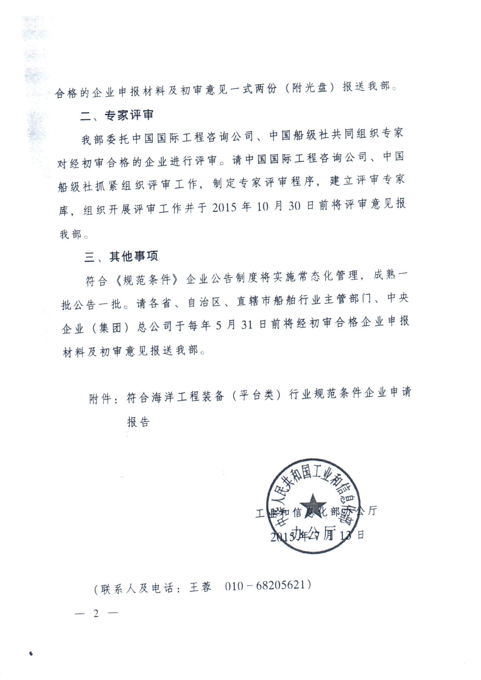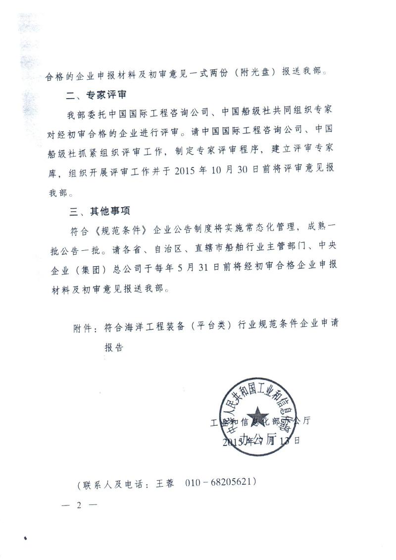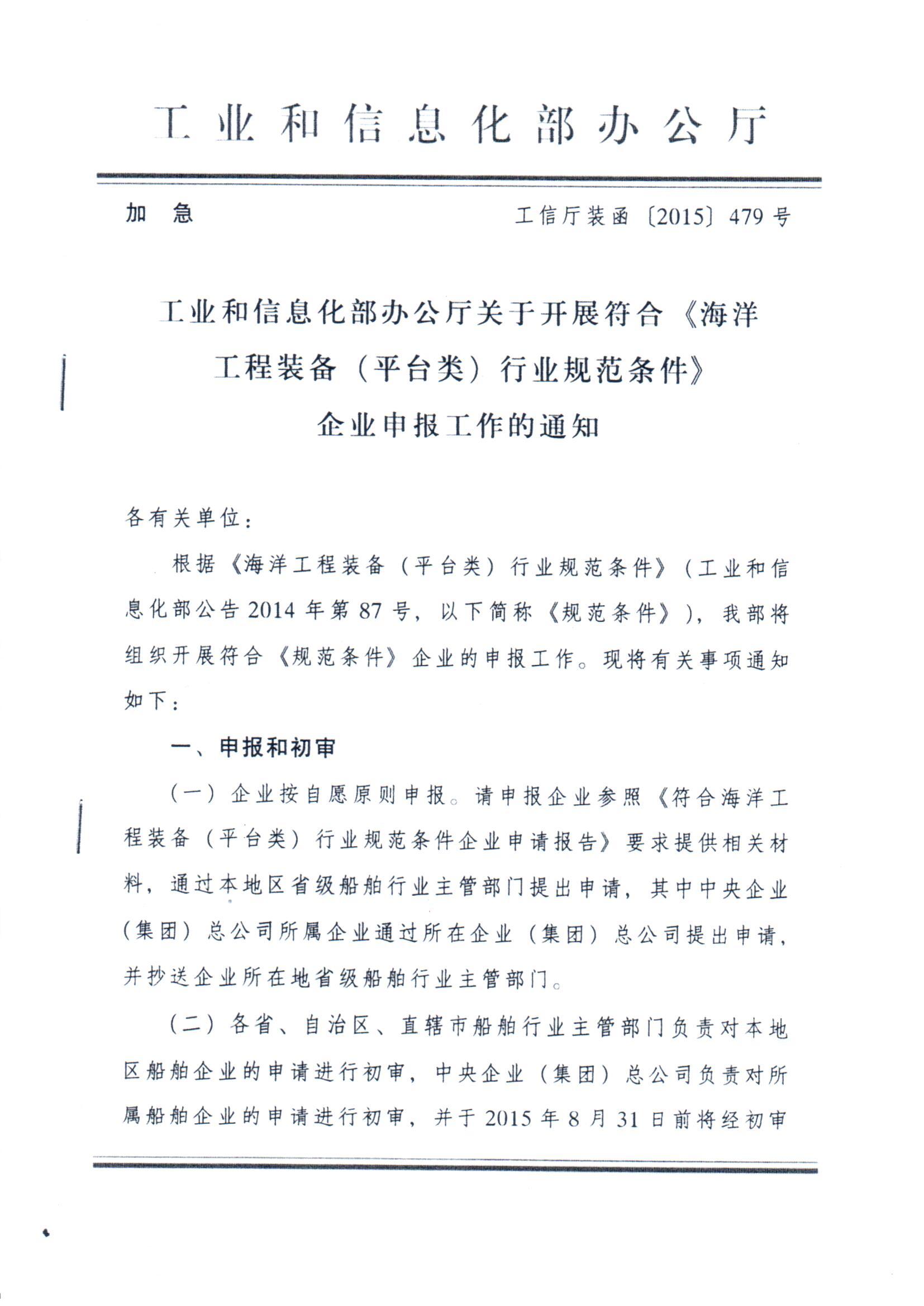 转发湖南省经济和信息化委员会《关于转发<工业和信息化部办公厅关于开展符合海洋工程装备(平台类)行业规范条件企业申报工作的通知>的通知》