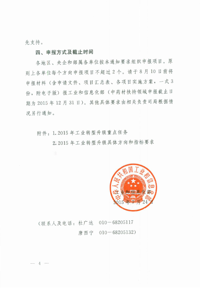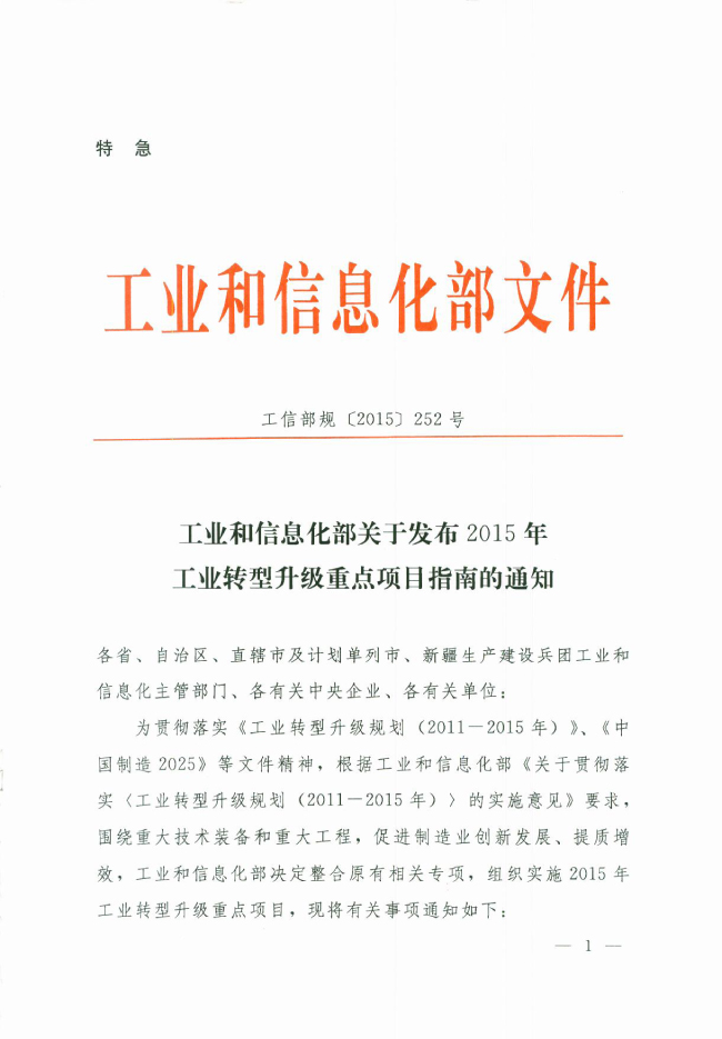 转发工业和信息化部《关于发布2015年工业转型升级重点项目指南的通知》