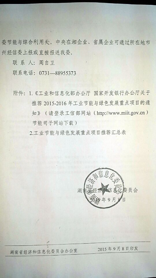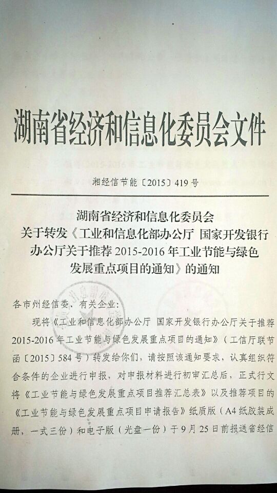 转发湖南省经济和信息化委员会关于转发《工业和信息化部办公厅 国家开发银行办公厅关于推进2015-2016年工业节能与绿色发展重点项目的通知》的通知