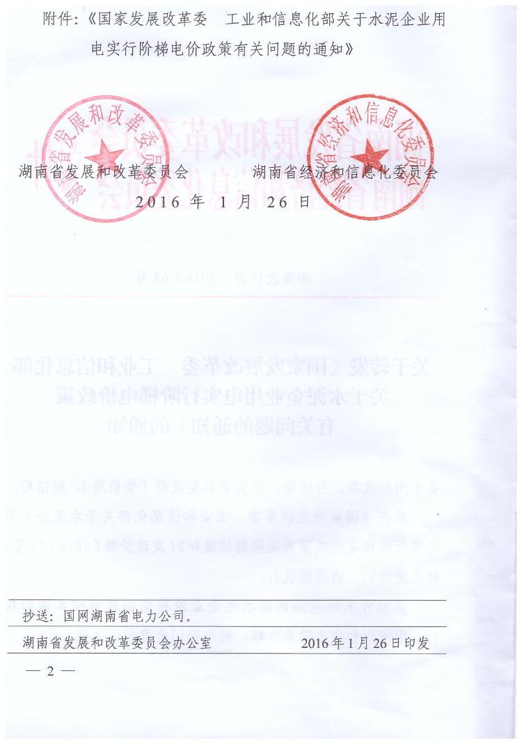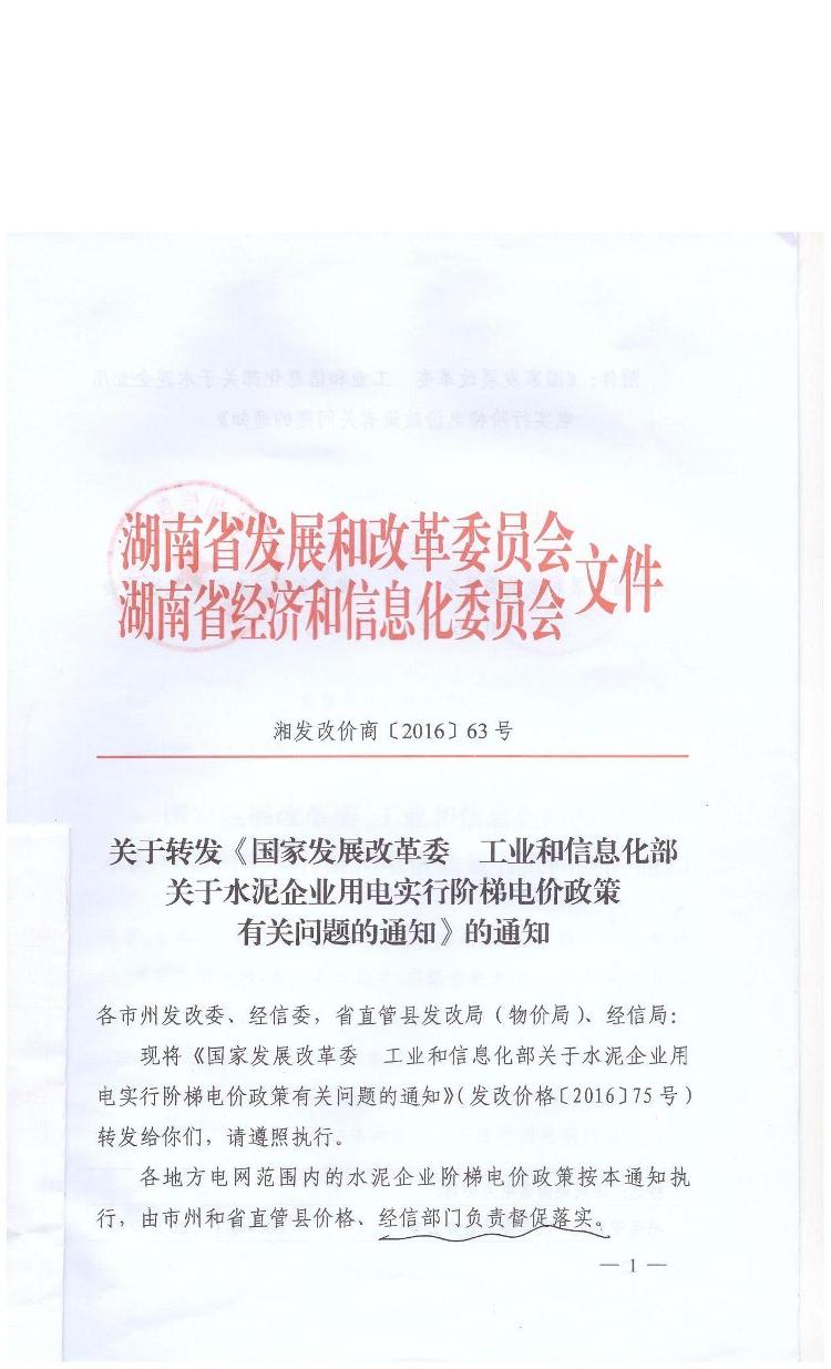 转发湖南省经济和信息化委员会《关于转发《国家发展改革委 工业和信息化部关于水泥企业用电实行阶梯电价政策有关问题的通知》的通知
