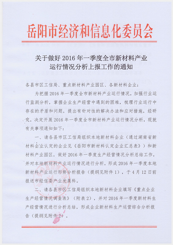 关于做好2016年一季度全市新材料产业运行情况分析上报工作的通知