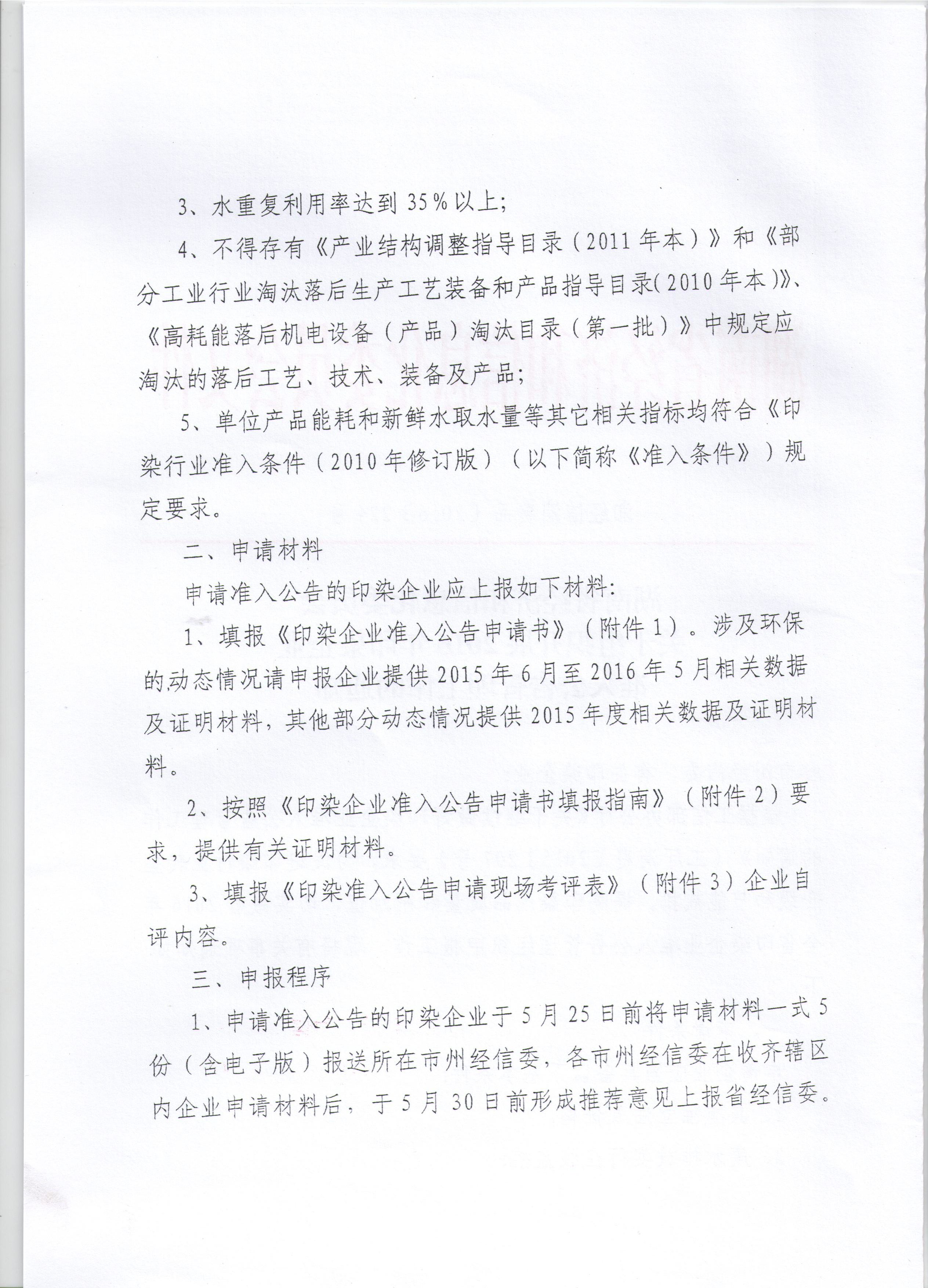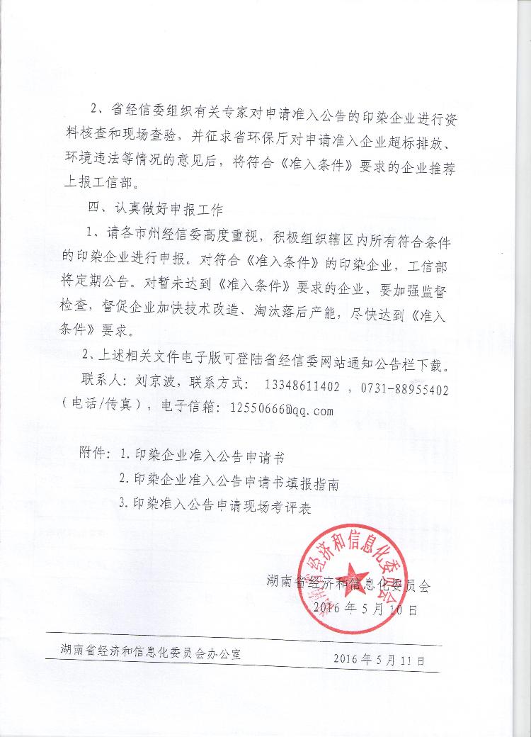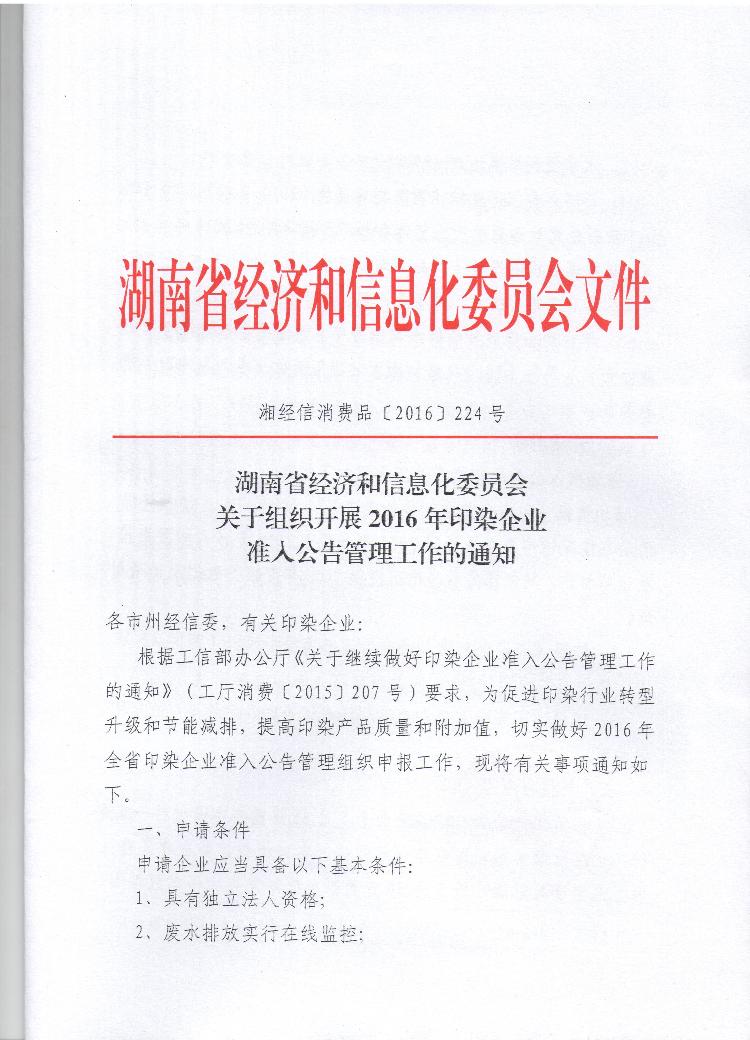 转发湖南省经济和信息化委员会关于组织开展2016年印染企业准入公告管理工作的通知