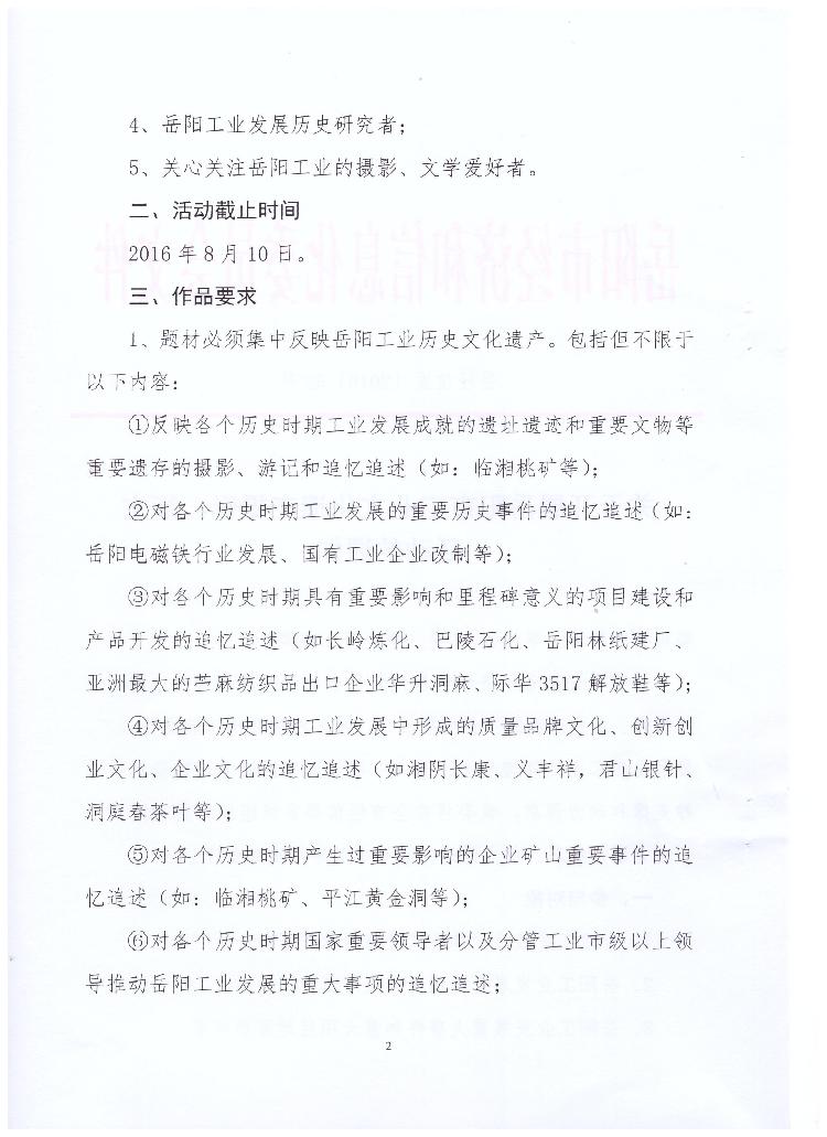关于开展岳阳市工业文化遗产摄影、征文活动的通知