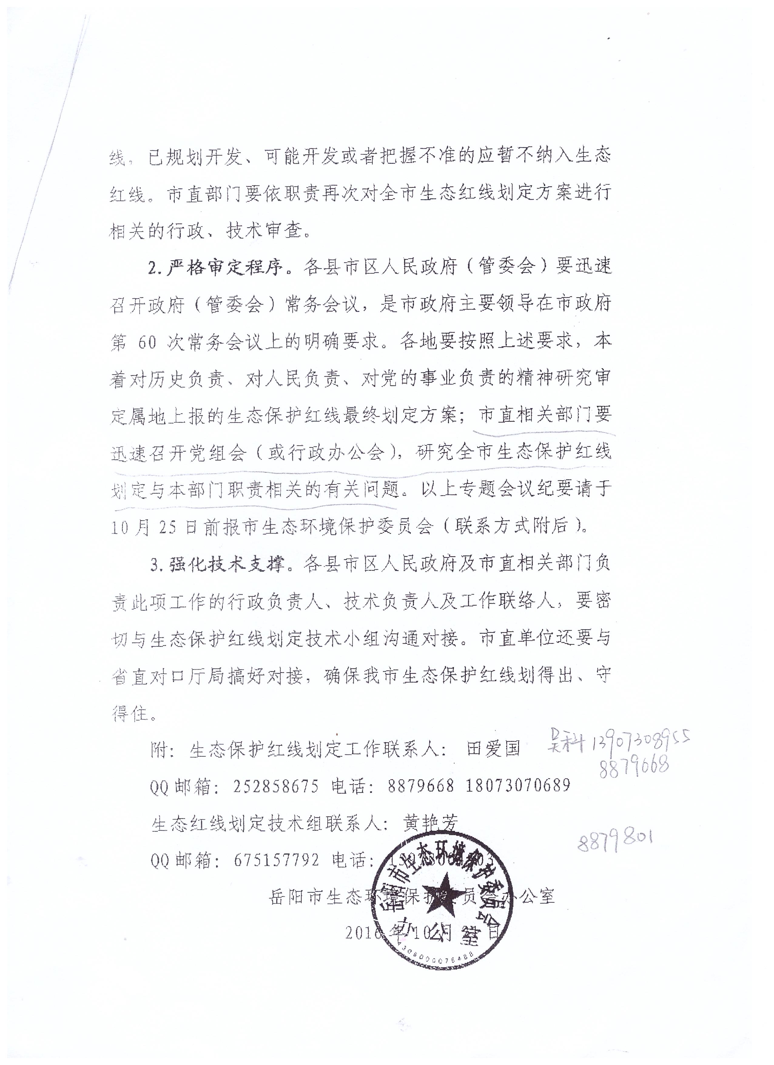 转发岳阳市生态环境保护委员会办公室《关于迅速落实市政府第60次常务会关于生态保护红线划定工作要求的紧急通知》
