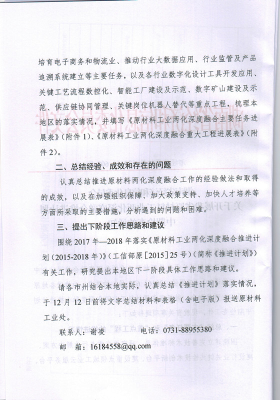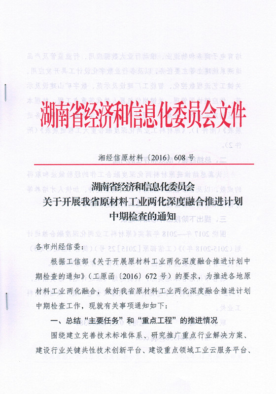 转发湖南省经济和信息化委员会《关于开展我省原材料工业两化深度融合推进计划中期检查的通知》