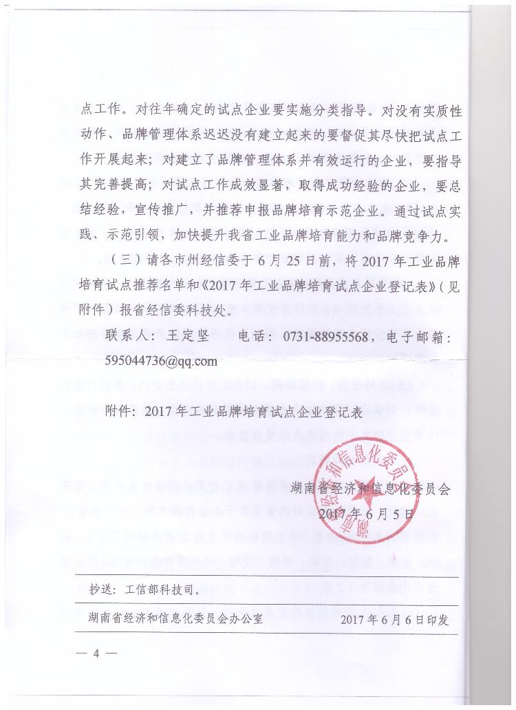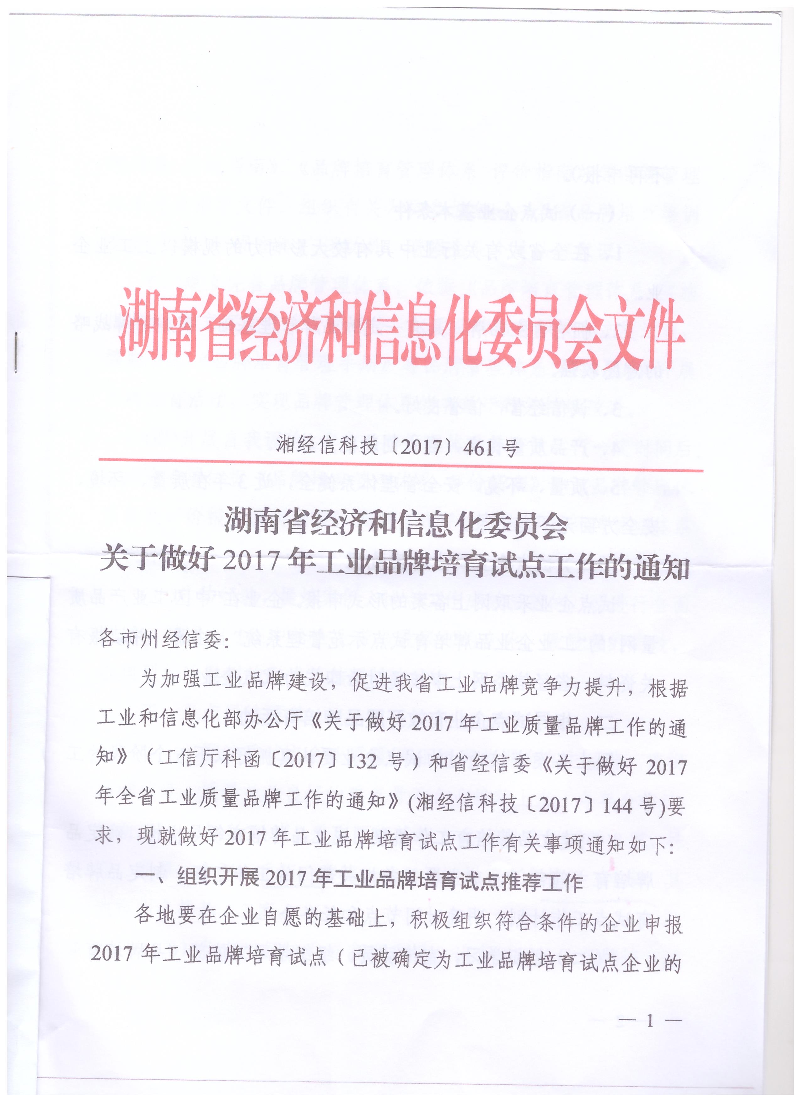 转发《湖南省经信委关于做好2017年工业品牌培育试点工作的通知》