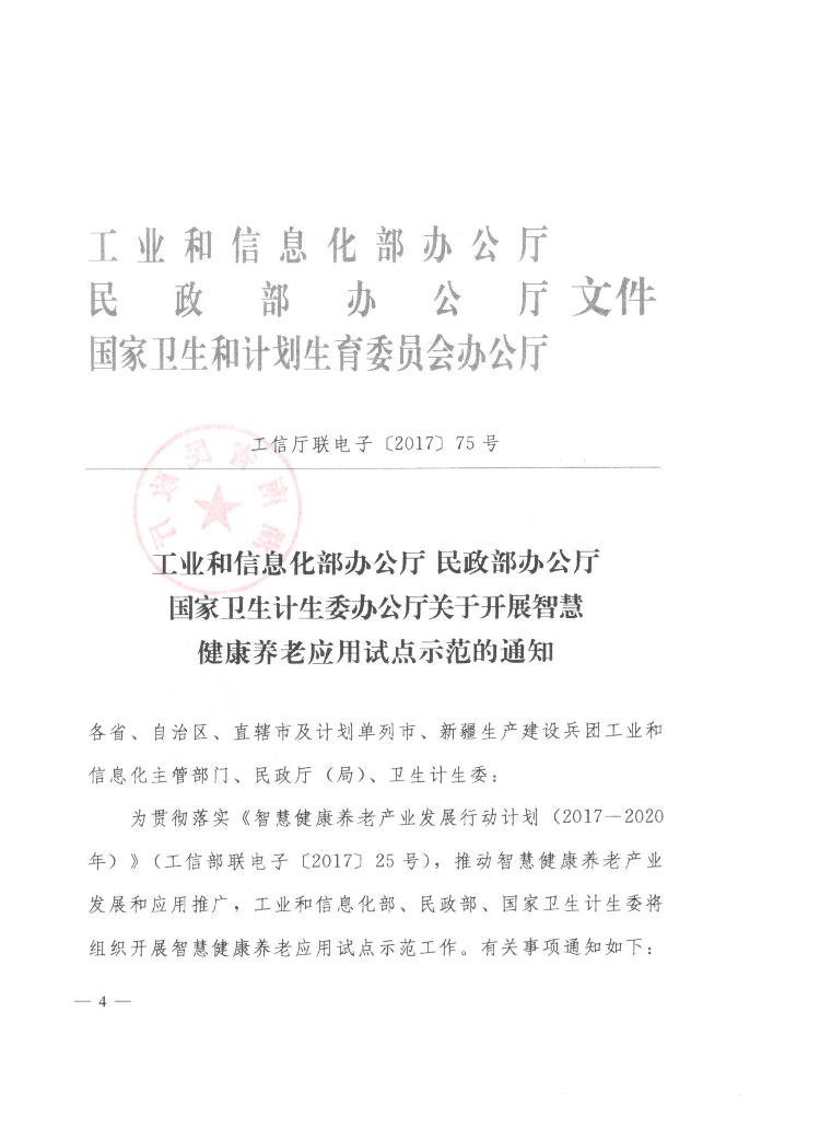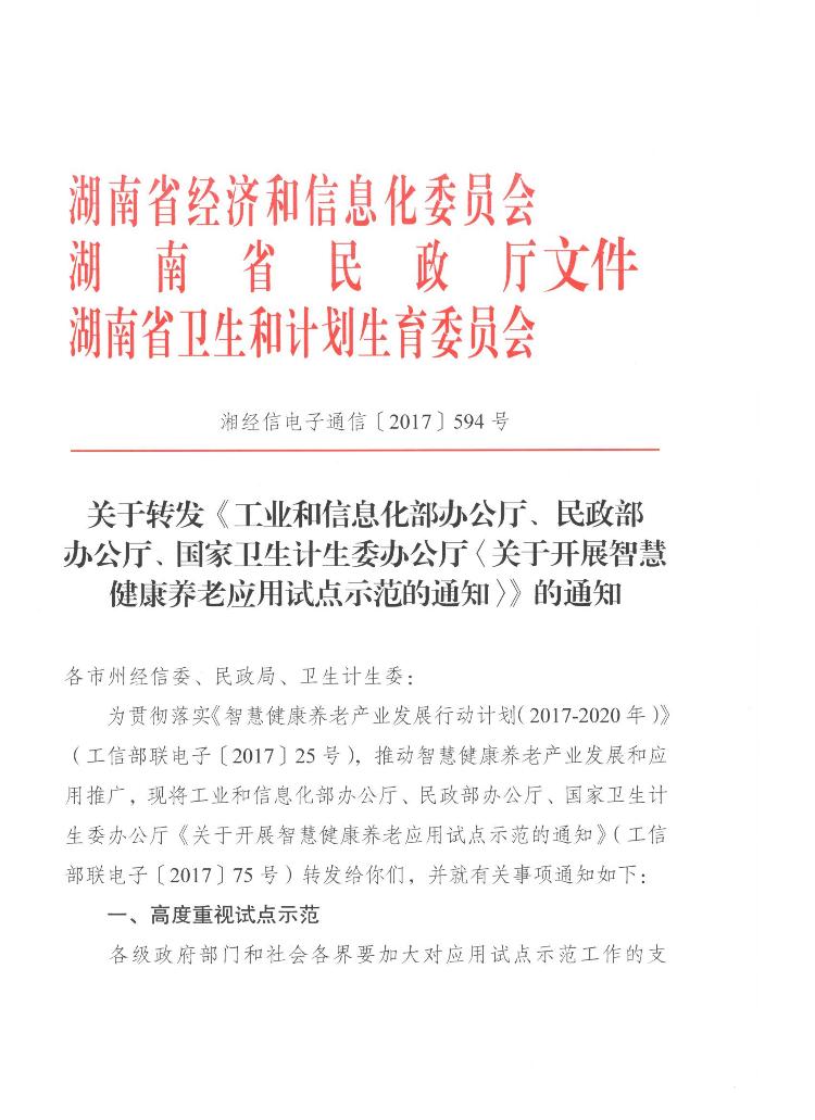 关于转发三部门开展智慧健康养老应用试点示范的通知