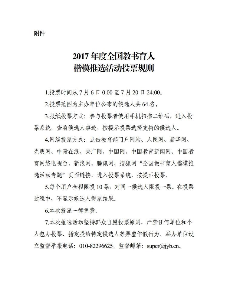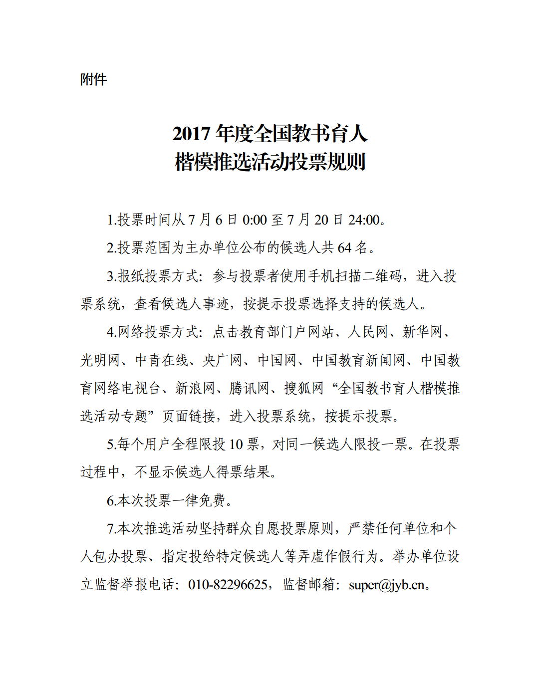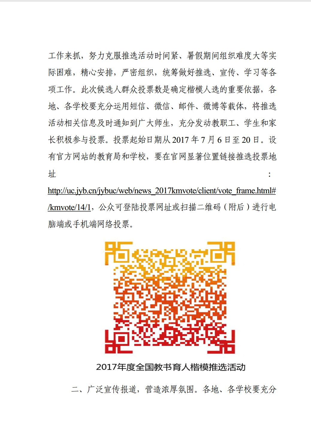 关于认真做好2017年度全国教书育人楷模推选投票工作的通知