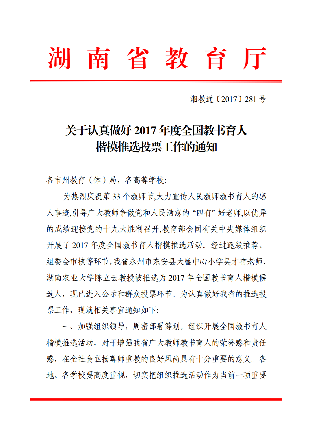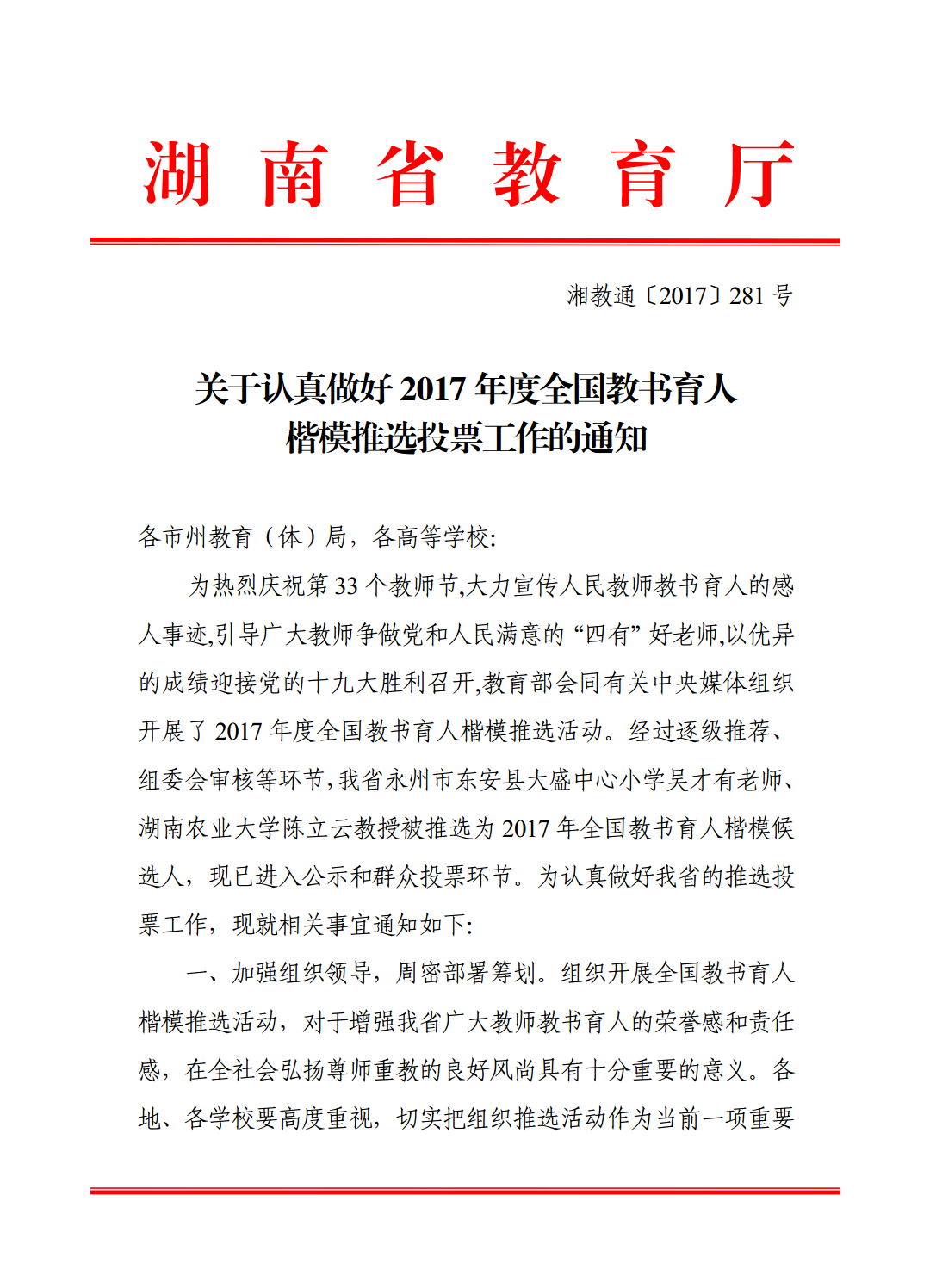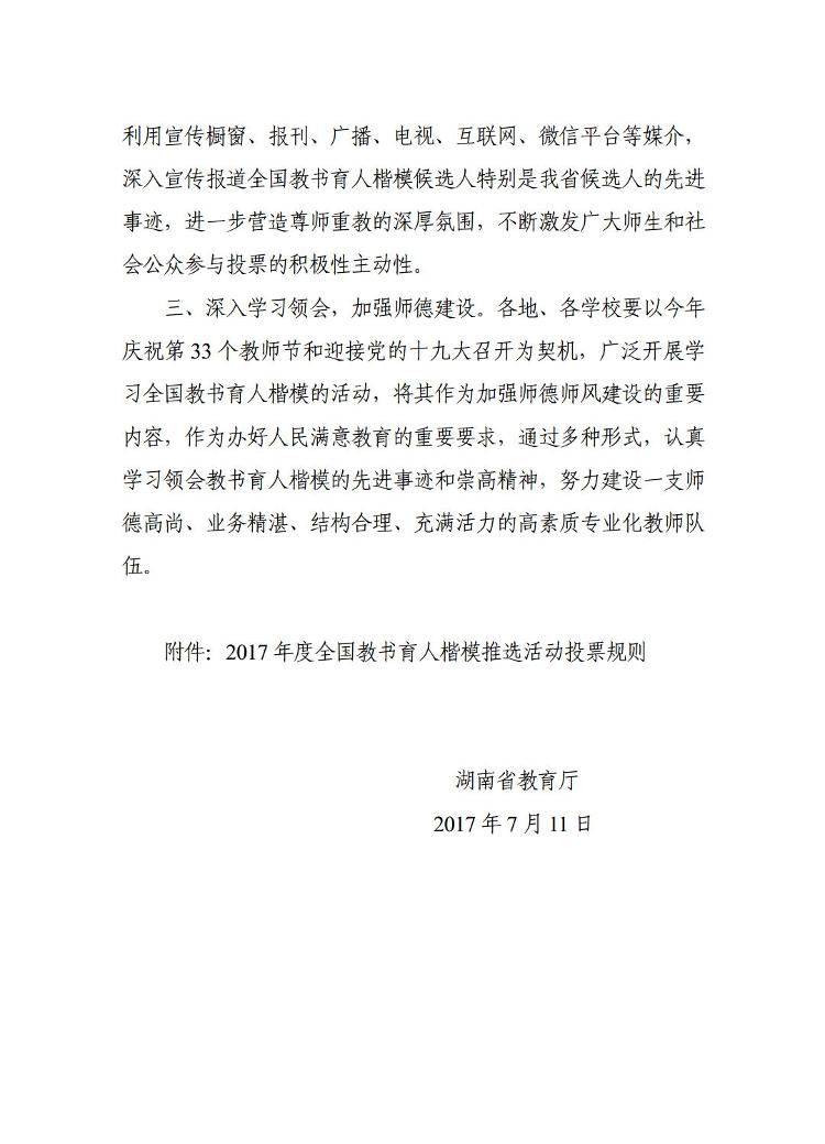 关于认真做好2017年度全国教书育人楷模推选投票工作的通知