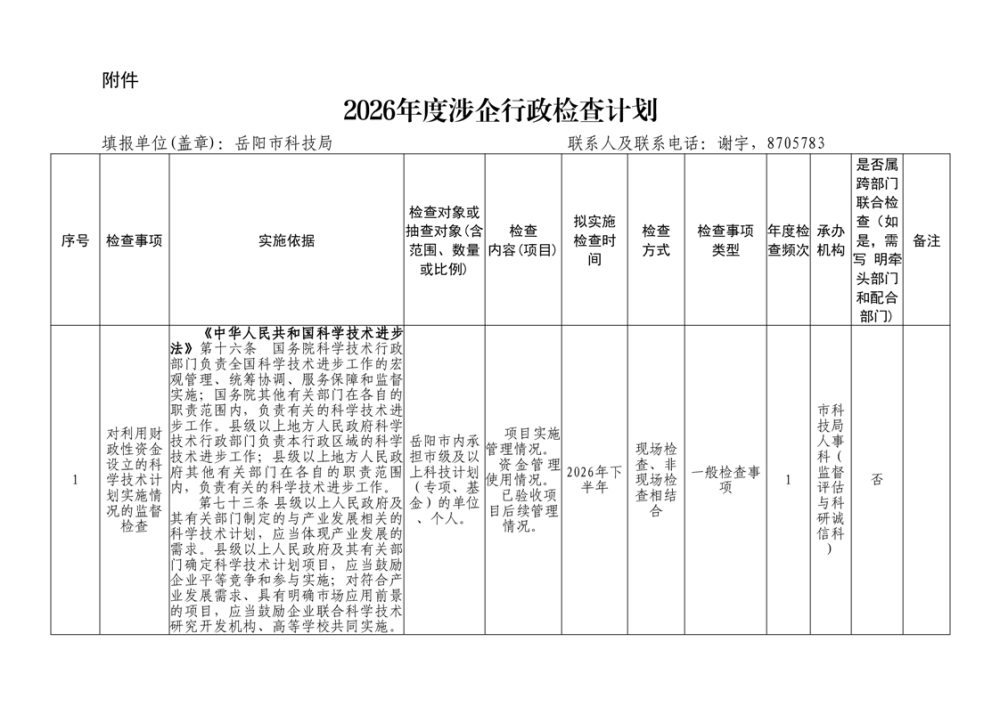 2026年度涉企行政检查计划