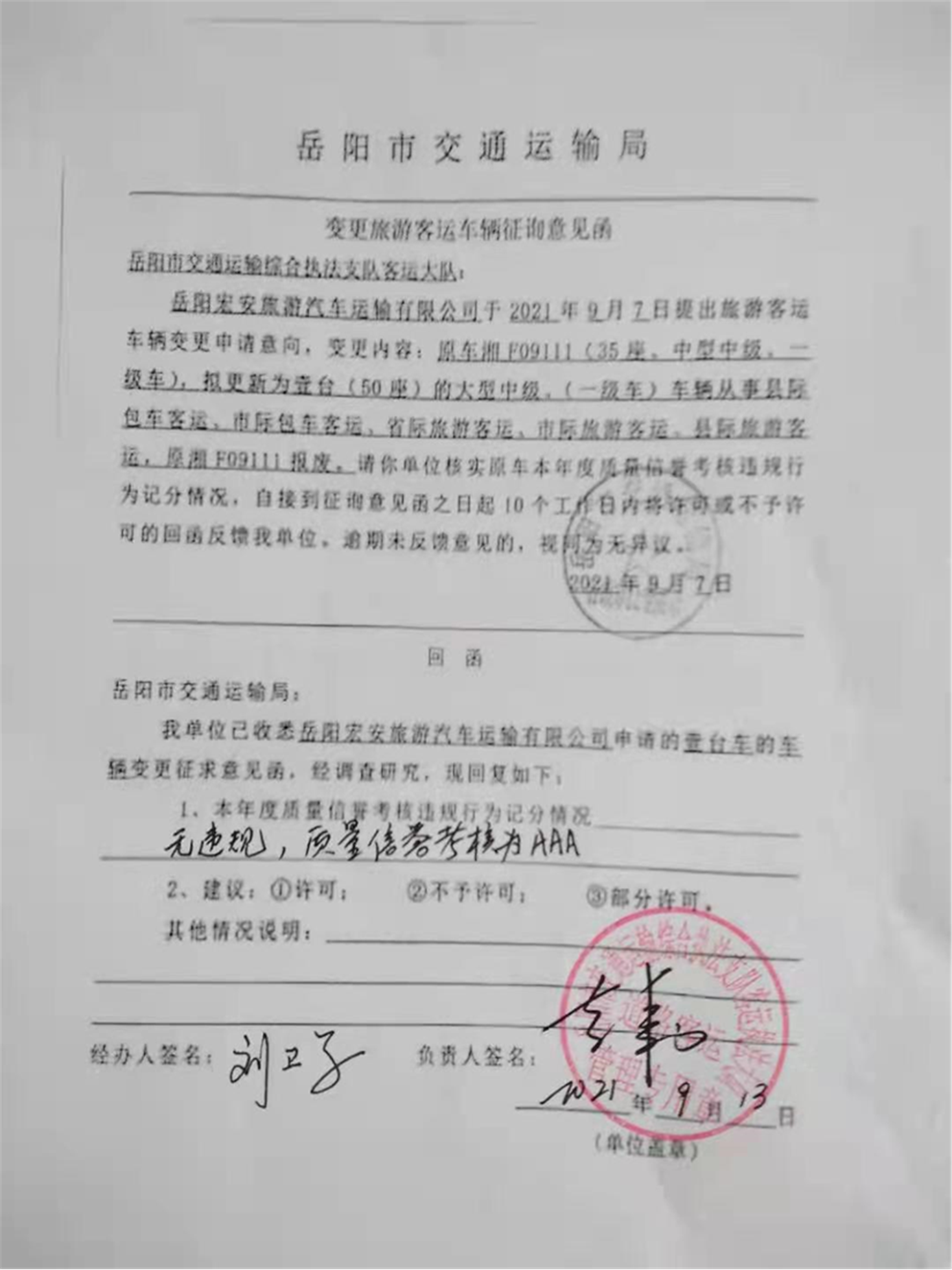 现将我局受理的道路旅客运输相关事项进行公示,如有意见或建议的,请于公示之日起5个工作日内书面向我局行政审批科反映,并在反映材料上署名,所反映的内容必须真实。