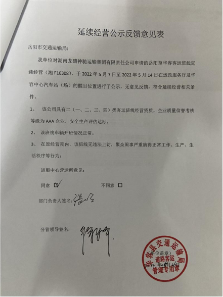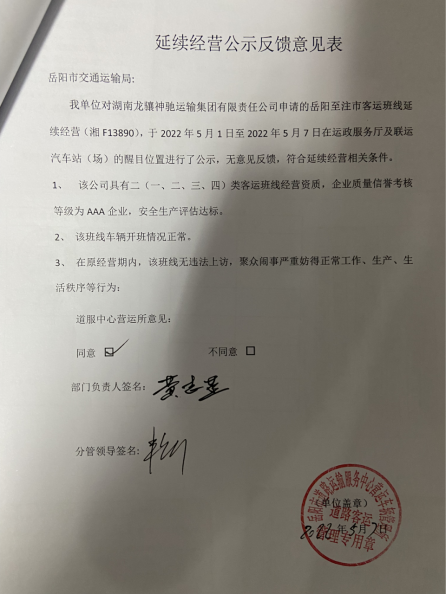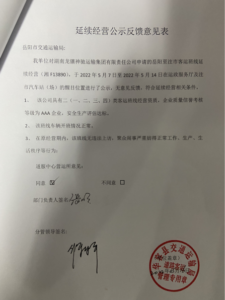 现将我局受理的道路旅客运输相关事项进行公示,如有意见或建议的,请于公示之日起5个工作日内书面向我局行政审批科反映,并在反映材料上署名,所反映的内容必须真实。