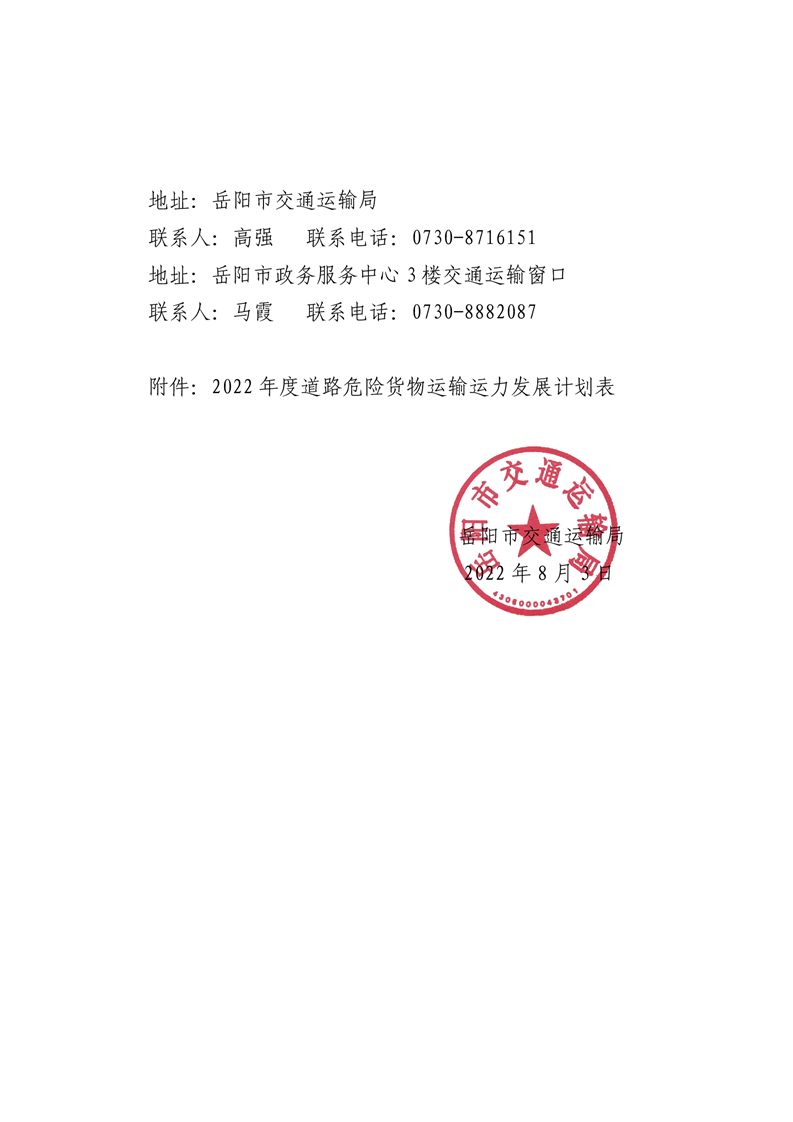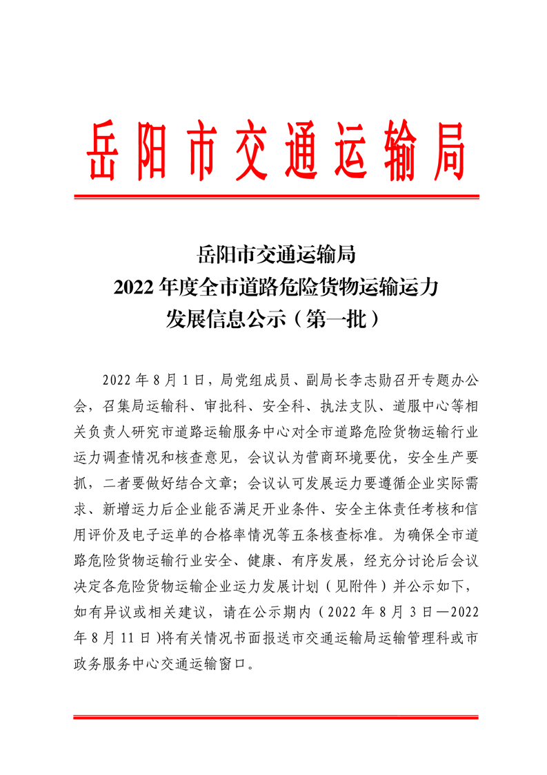 岳阳市交通运输局2022年度全市道路危险货物运输运力发展信息公示(第一批)