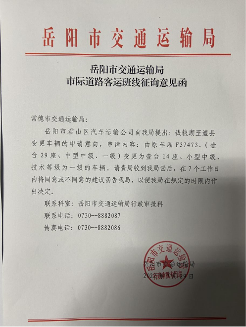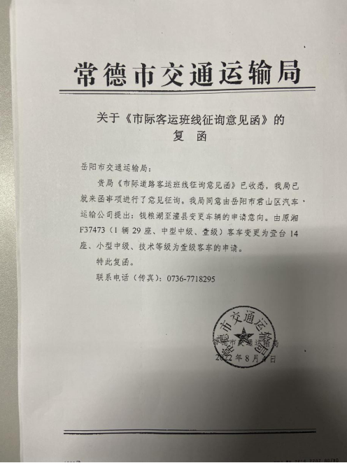 现将我局受理的道路旅客运输相关事项进行公示,如有意见或建议的,请于公示之日起5个工作日内书面向我局行政审批科反映,并在反映材料上署名,所反映的内容必须真实。
