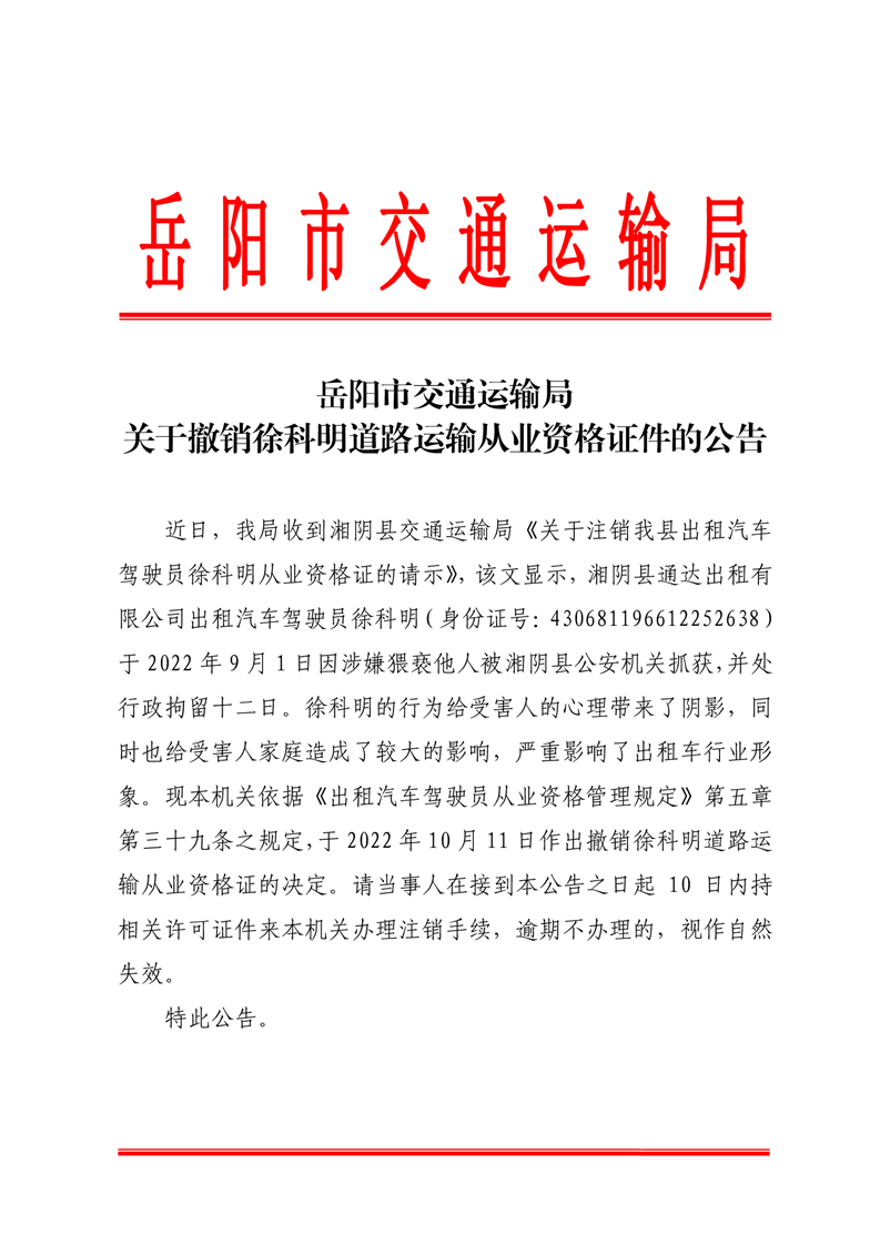 关于注销我县出租汽车驾驶员徐科明从业资格证的请示.pdf