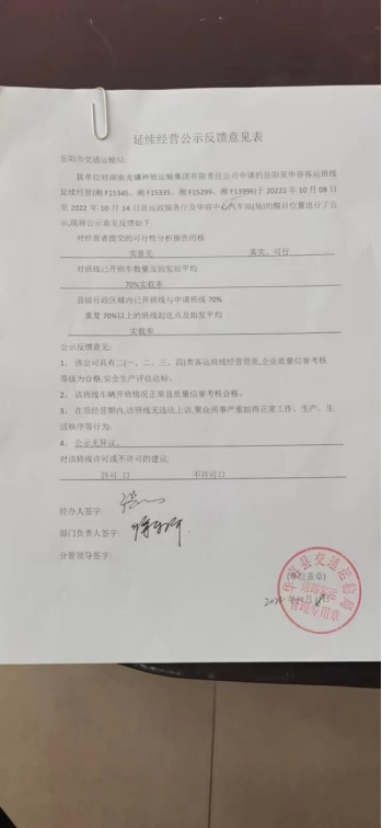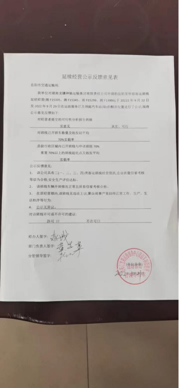 现将我局受理的道路旅客运输相关事项进行公示,如有意见或建议的,请于公示之日起5个工作日内书面向我局行政审批科反映,并在反映材料上署名,所反映的内容必须真实。