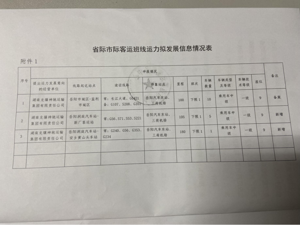 附件:省市际客运班线运力拟发展信息情况表