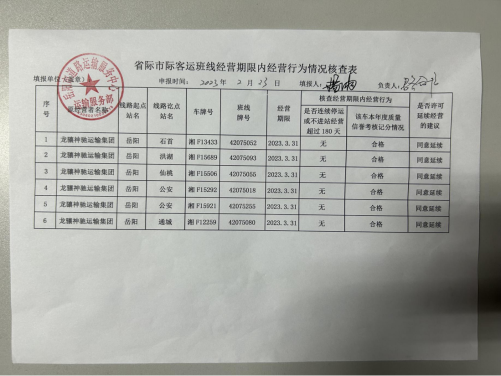 省际客运相关许可公示(延续)