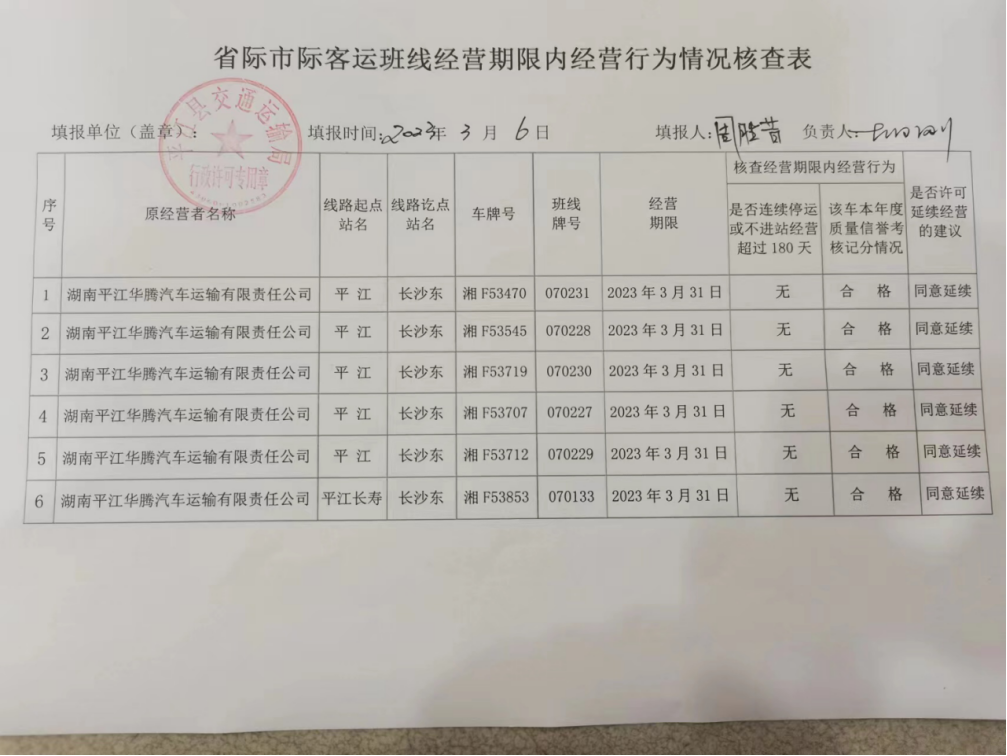 市际客运相关许可公示(延续)
