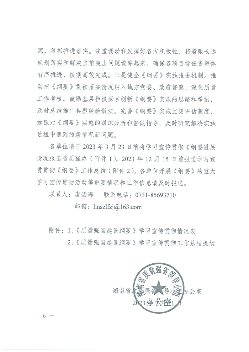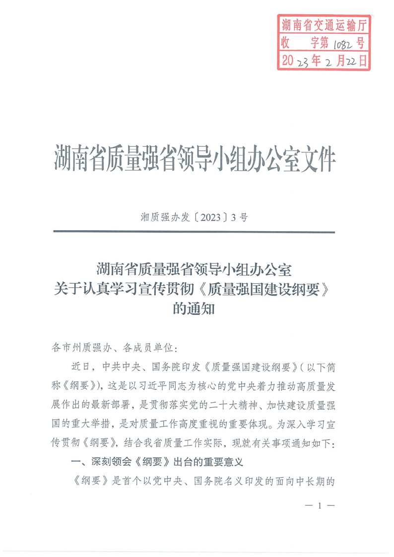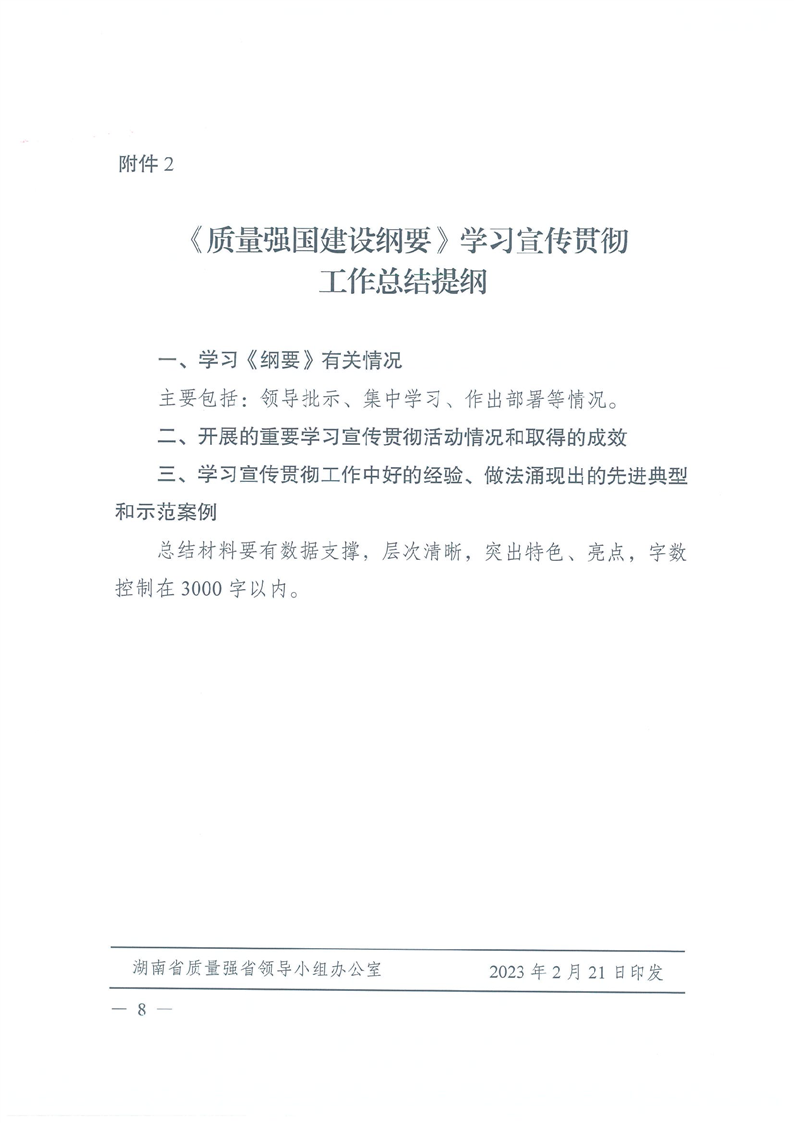 湖南省质量强省领导小组办公室关于认真学习宣传贯彻《质量强国建设纲要》的通知