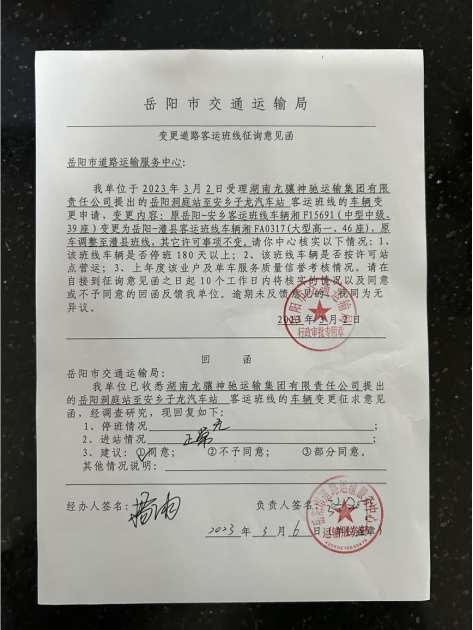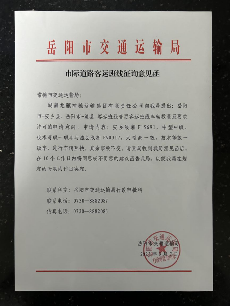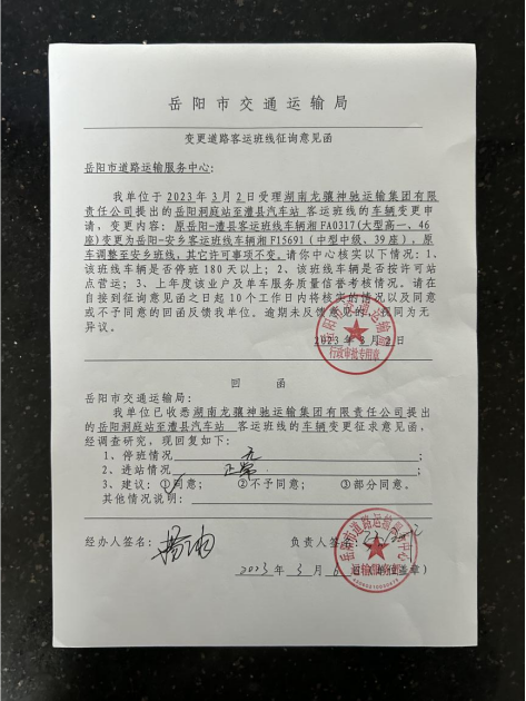 现将我局受理的道路旅客运输相关事项进行公示,如有意见或建议的,请于公示之日起5个工作日内书面向我局行政审批科反映,并在反映材料上署名,所反映的内容必须真实。