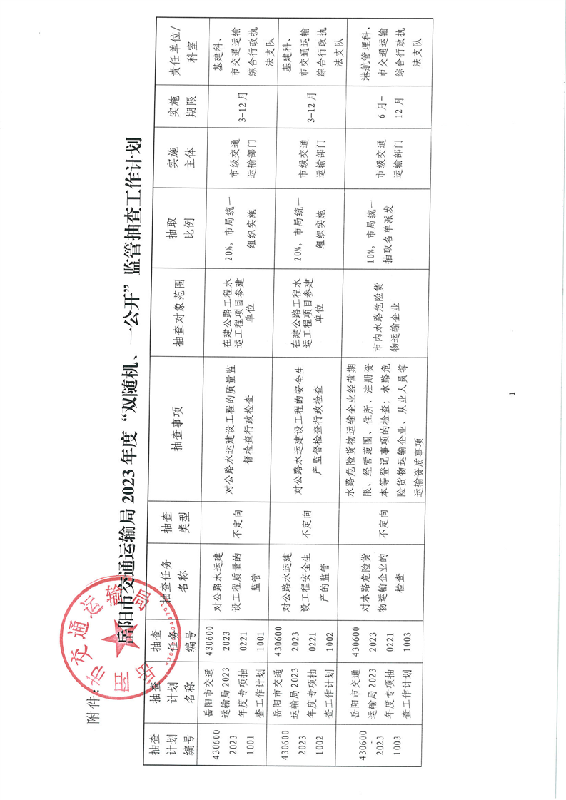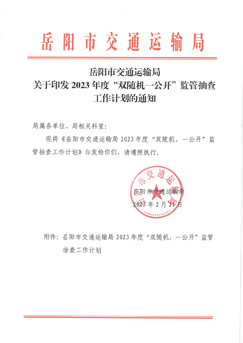 关于印发2023年度“双随机、一公开”监管抽查工作计划的通知