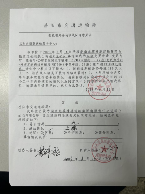 现将我局受理的道路旅客运输相关事项进行公示,如有意见或建议的,请于公示之日起5个工作日内书面向我局行政审批科反映,并在反映材料上署名,所反映的内容必须真实。
