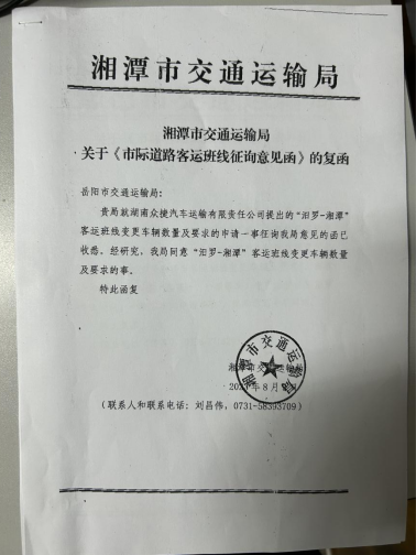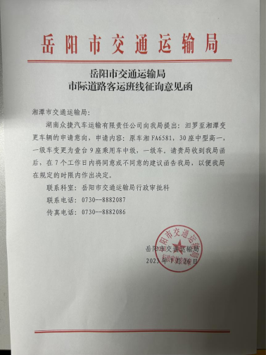 现将我局受理的道路旅客运输相关事项进行公示,如有意见或建议的,请于公示之日起5个工作日内书面向我局行政审批科反映,并在反映材料上署名,所反映的内容必须真实。