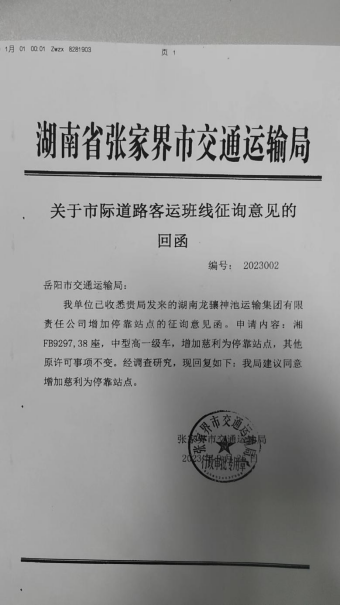 市际客运相关许可公示(增加停靠站点)