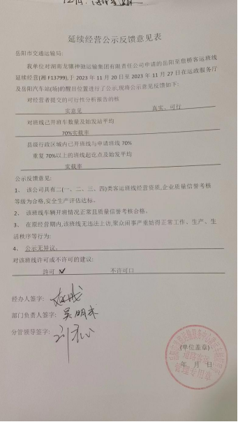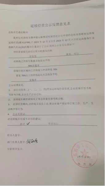 现将我局受理的道路旅客运输相关事项进行公示,如有意见或建议的,请于公示之日起5个工作日内书面向我局行政审批科反映,并在反映材料上署名,所反映的内容必须真实。
