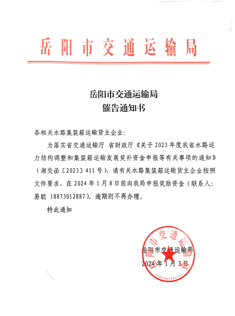 岳阳市交通运输局催告通知书