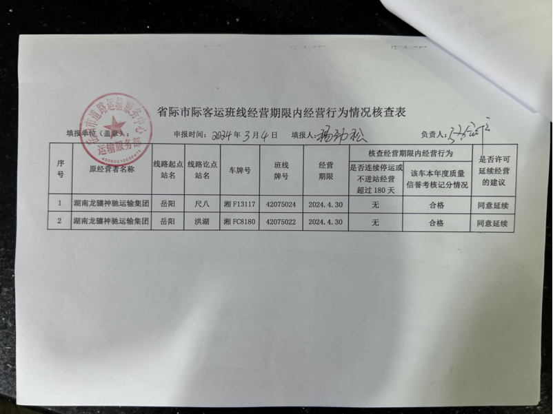 关于神驰公司岳阳至尺八湘F13117岳阳至洪湖湘FC8180延续经营的公示