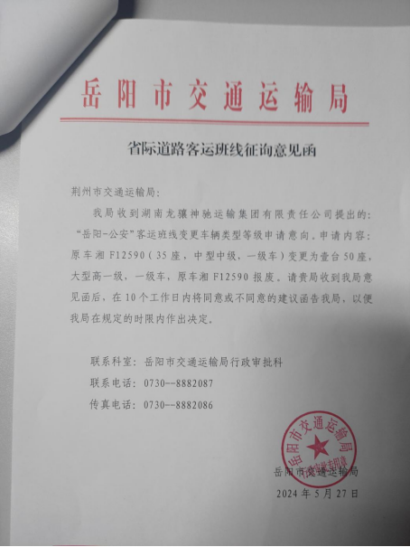 现将我局受理的道路旅客运输相关事项进行公示,如有意见或建议的,请于公示之日起5个工作日内书面向我局行政审批科反映,并在反映材料上署名,所反映的内容必须真实。