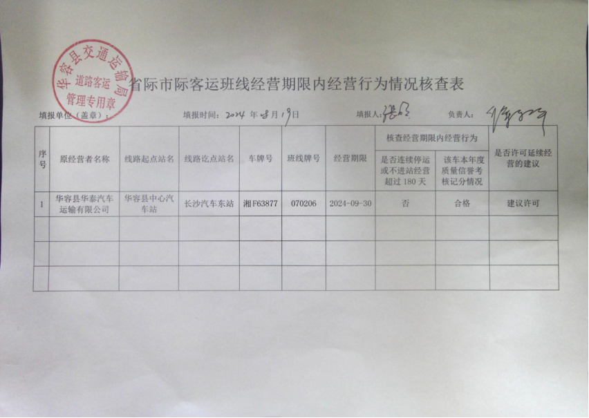 关于华容县华泰汽车运输有限公司华容县至长沙市湘F63877班线延续经营的公示