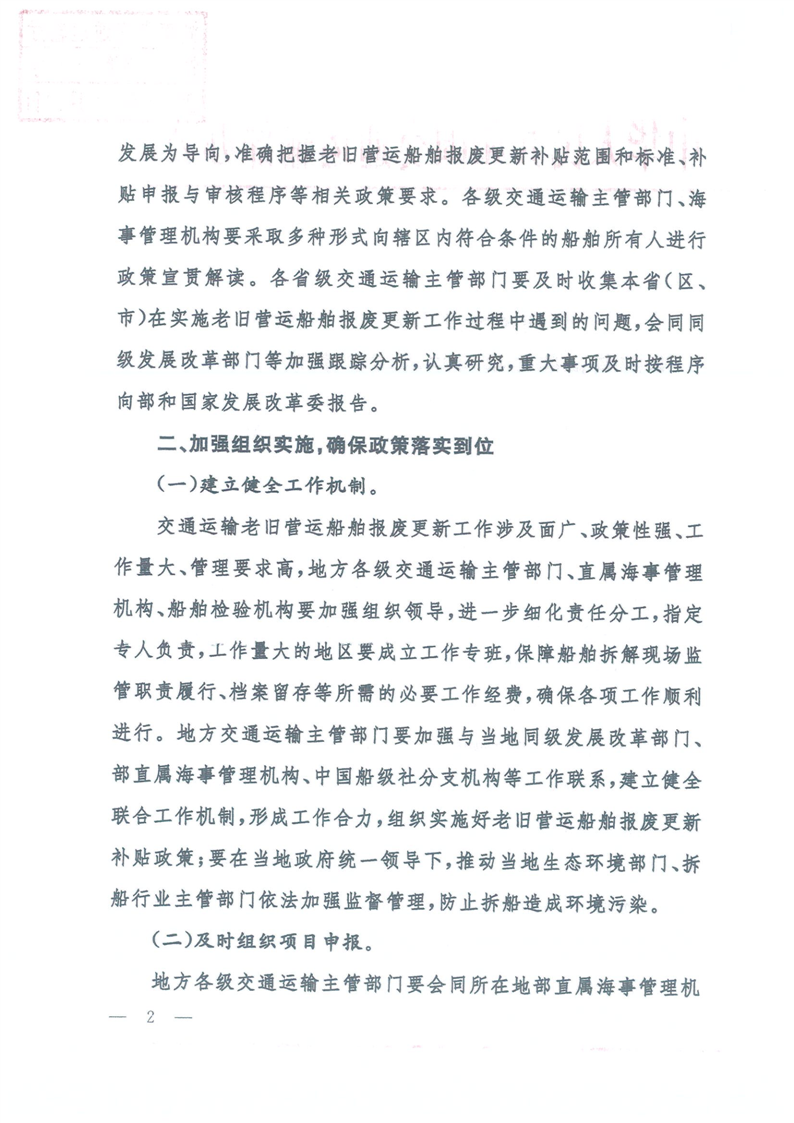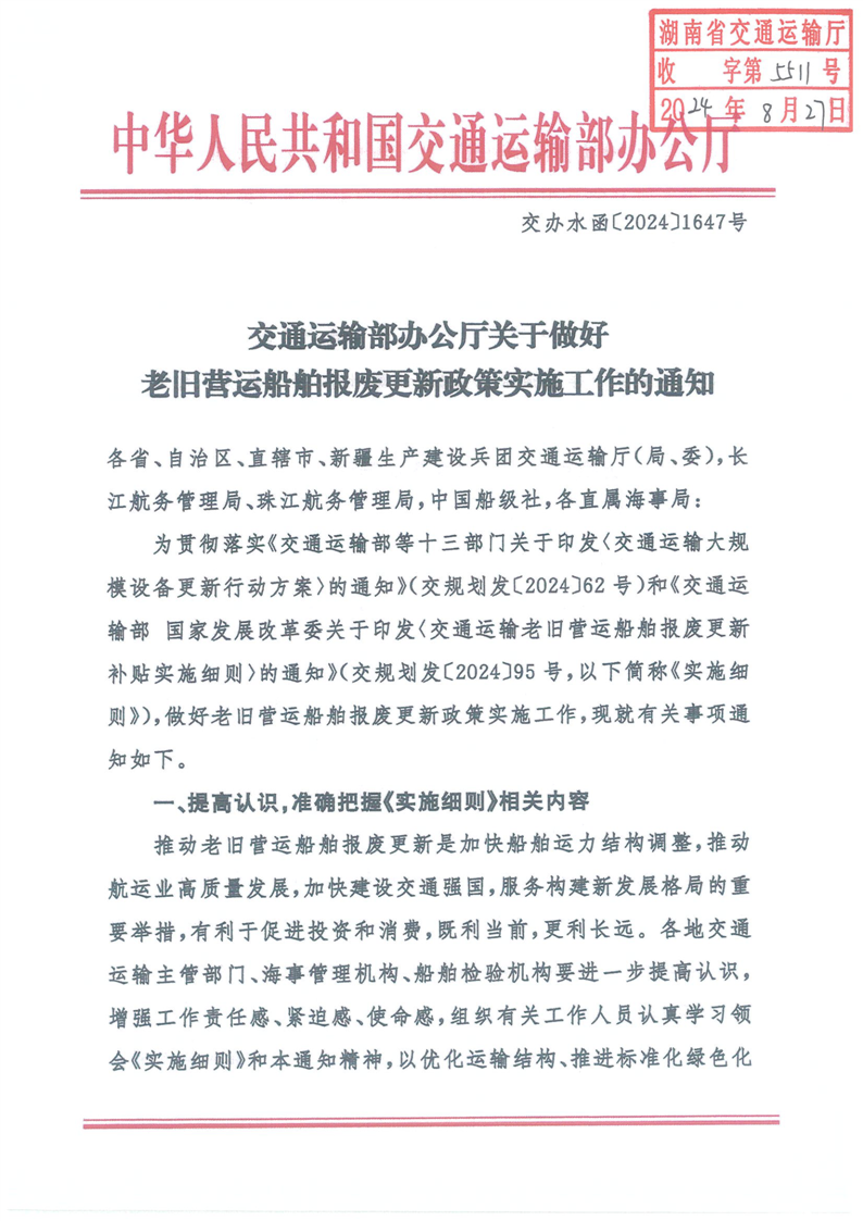 关于做好老旧营运船舶报废更新政策实施工作的通知