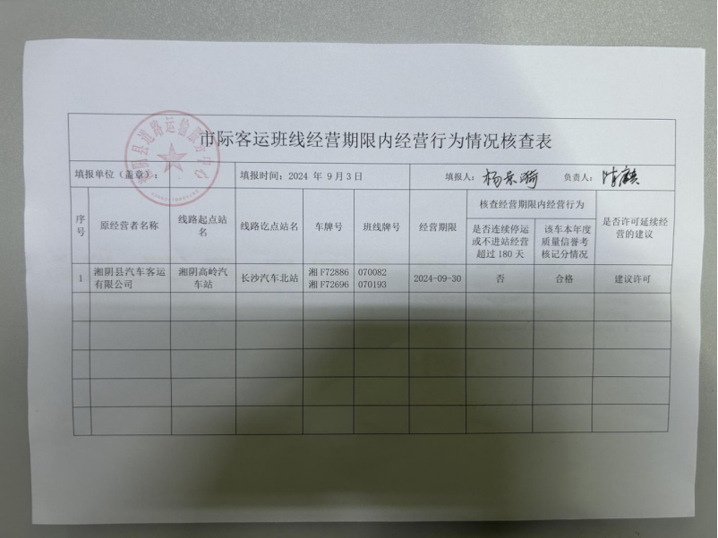 关于湘阴县汽车客运有限公司长沙北班线湘F72696湘F72886延续经营的公示