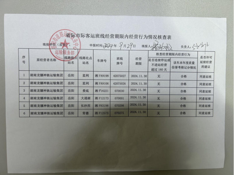 关于湖南龙骧神驰运输集团有限责任公司省际市际班线延续经营的公示