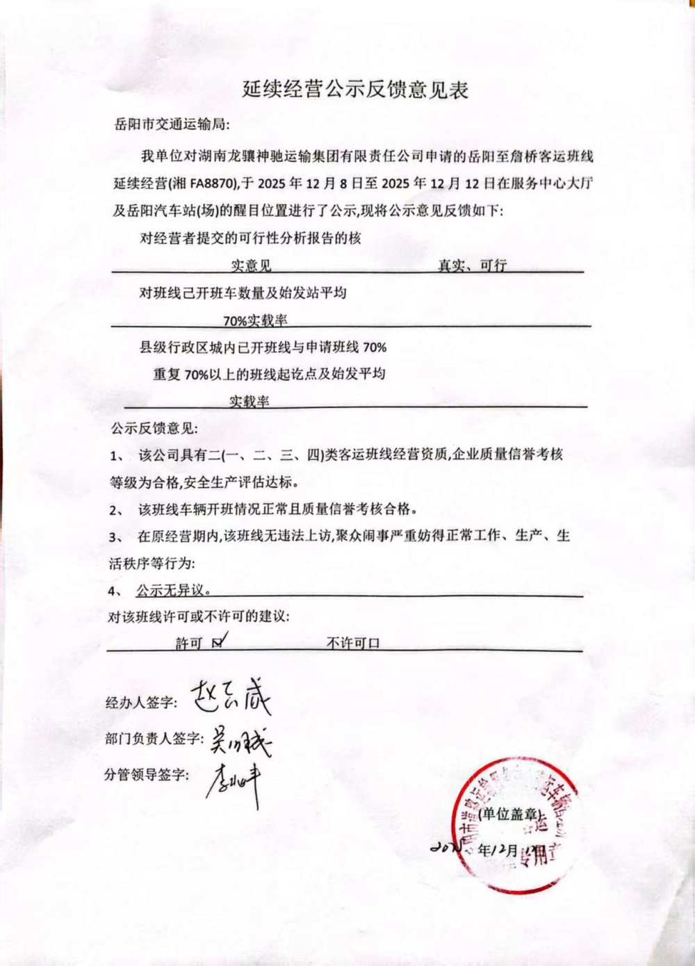 现将我局受理的道路旅客运输相关事项进行公示,如有意见或建议的,请于公示之日起5个工作日内书面向我局行政审批科反映,并在反映材料上署名,所反映的内容必须真实。