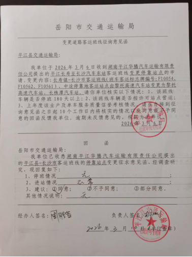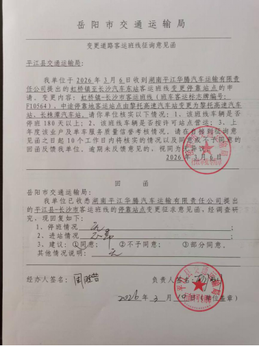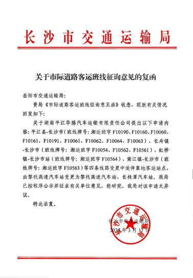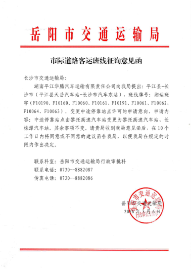 现将我局受理的道路旅客运输相关事项进行公示,如有意见或建议的,请于公示之日起5个工作日内书面向我局行政审批科反映,并在反映材料上署名,所反映的内容必须真实。