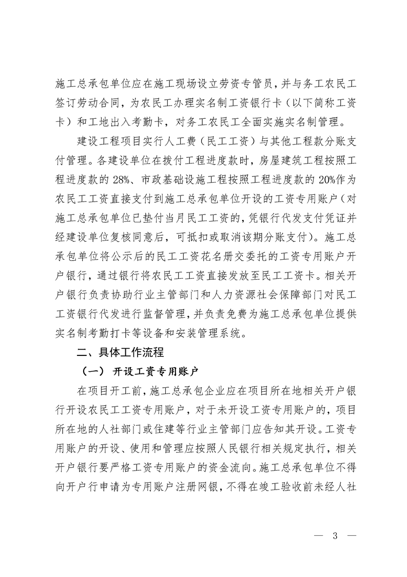 关于建设领域全面实施农民工实名制用工及农民工工资分账制管理工作的通知