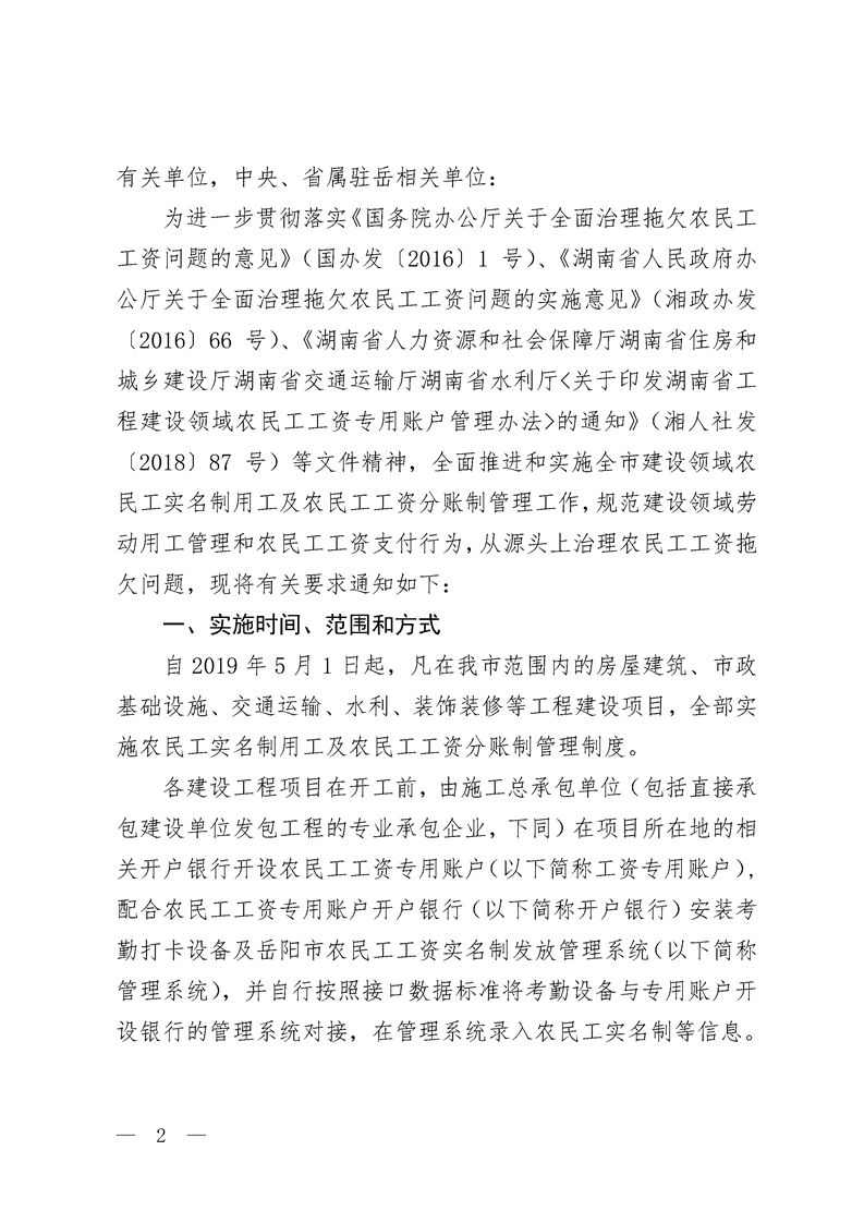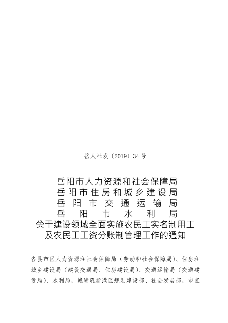 岳人社发〔2019〕34号 关于建设领域全面实施农民工实名制用工及农民工工资分账制管理工作的通知.doc