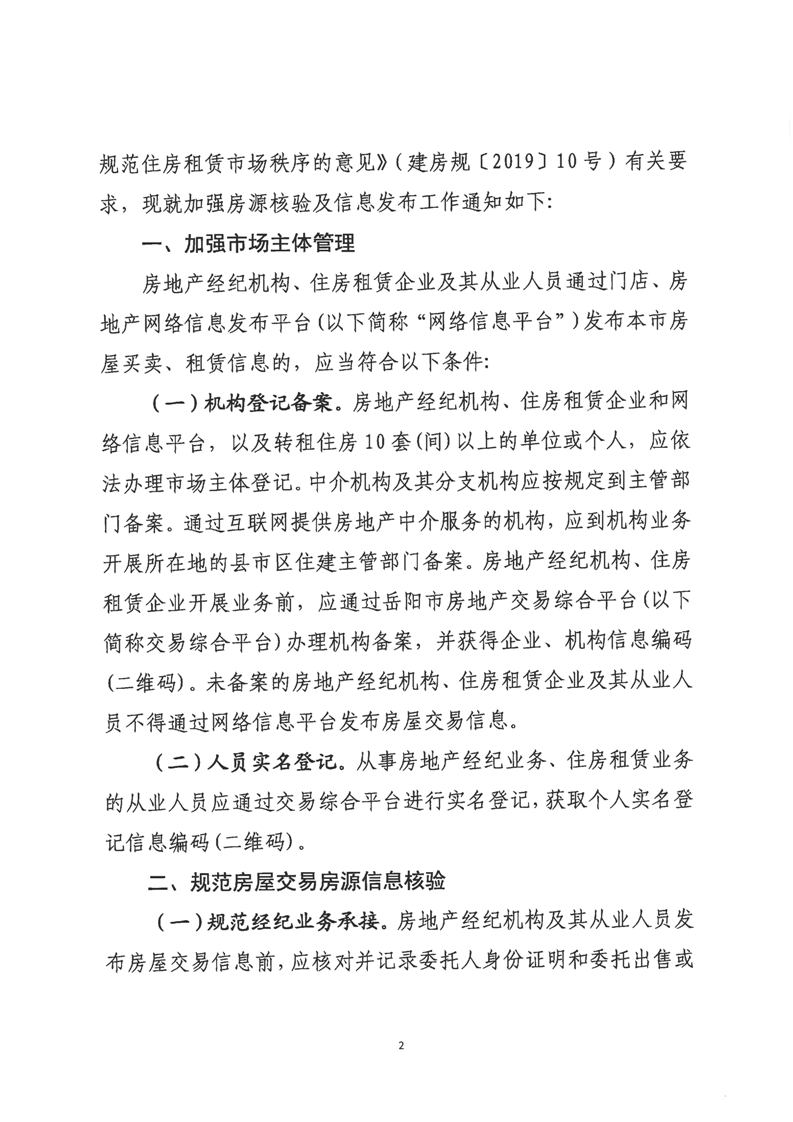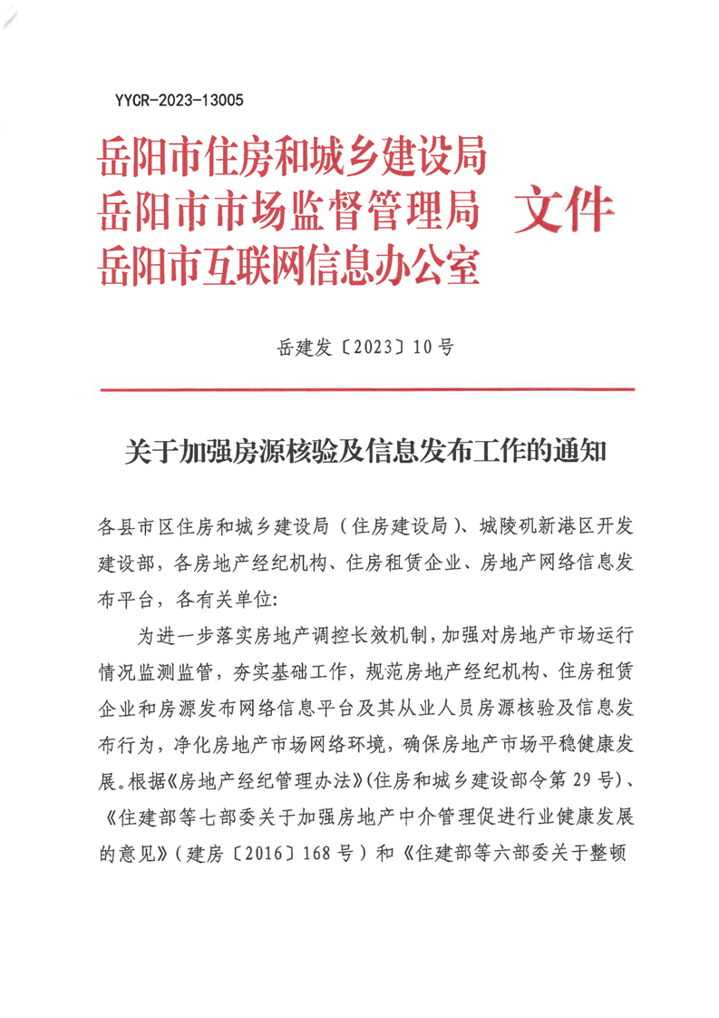 岳阳市住房和城乡建设局《关于加强房源核验及信息发布工作的通知》