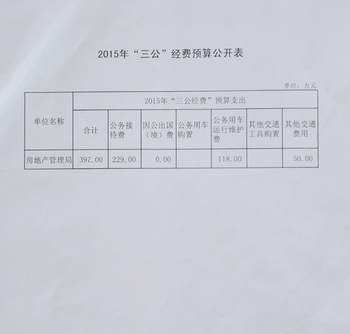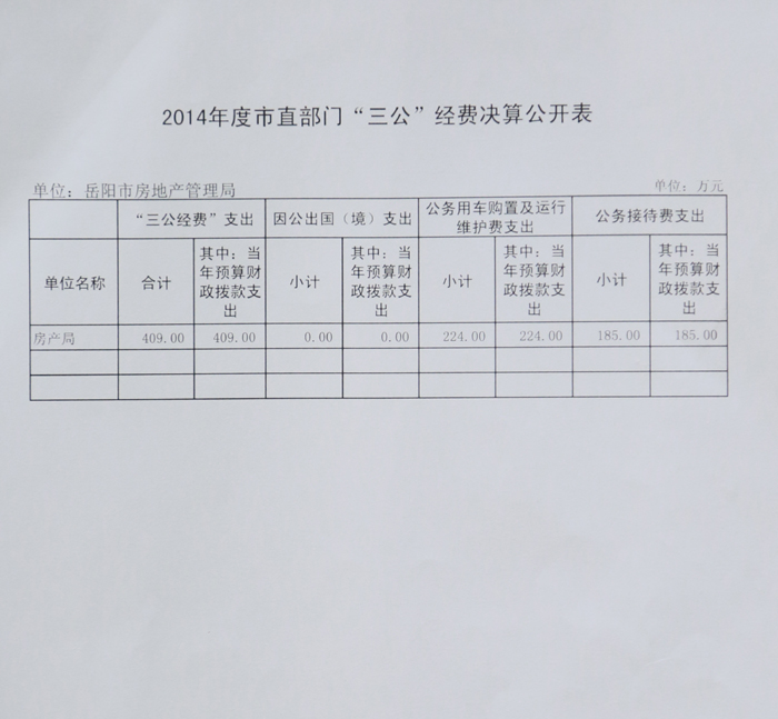 岳阳市房地产管理局2014年度“三公”经费决算公开表和2015年度“三公”经费预算公开表