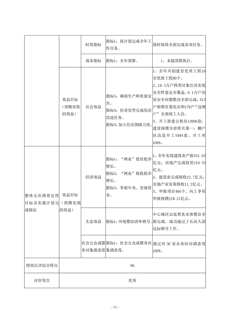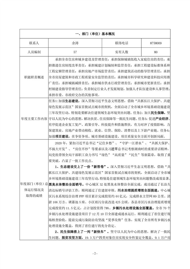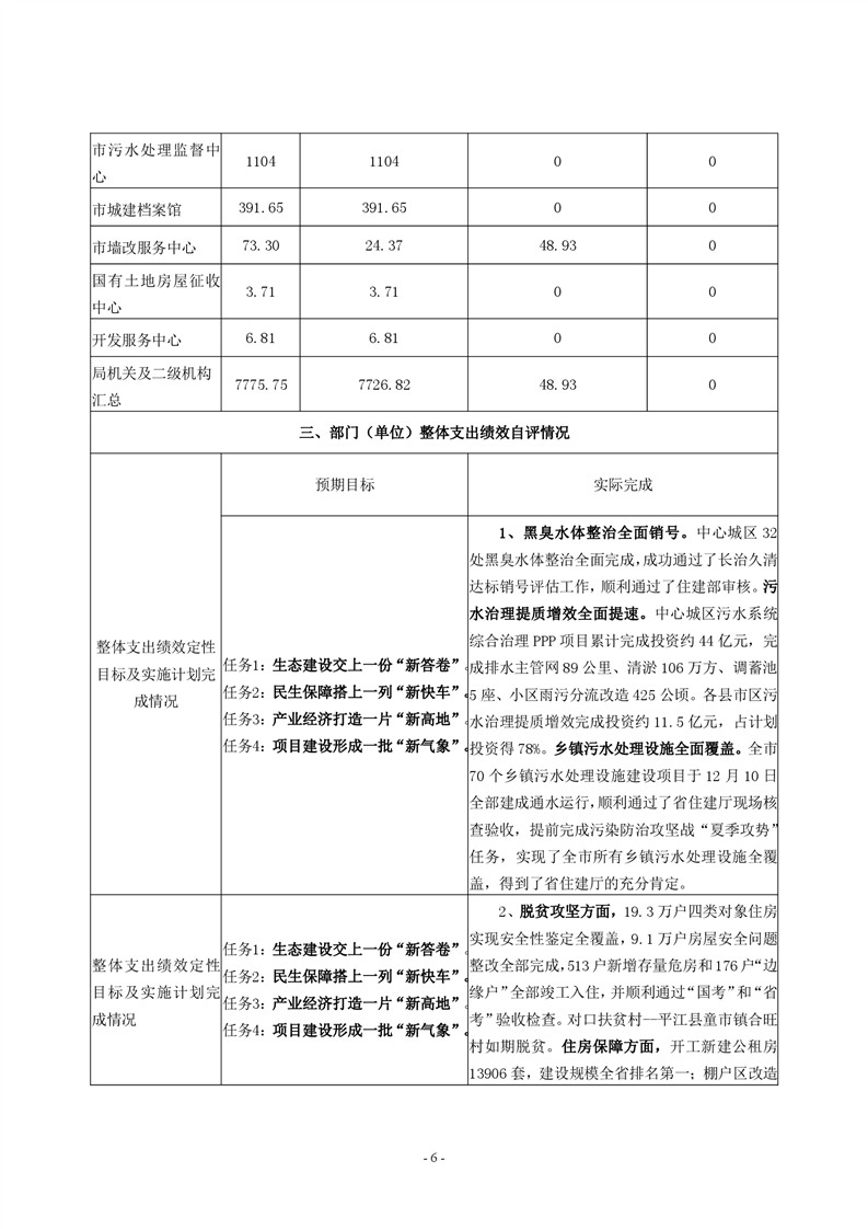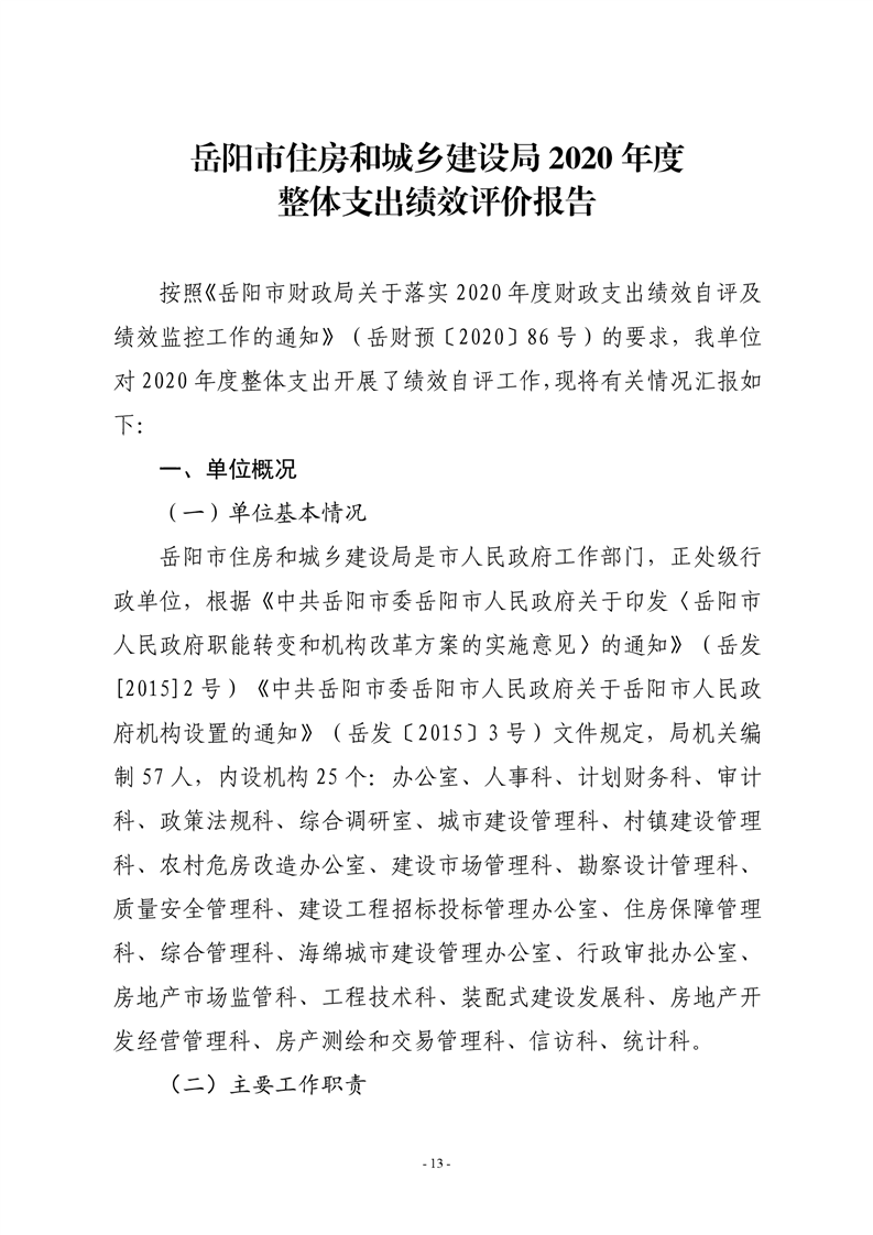 岳阳市住房和城乡建设局2020年度部门整体支出绩效评价自评报告