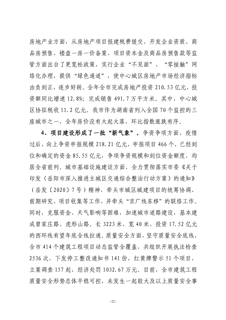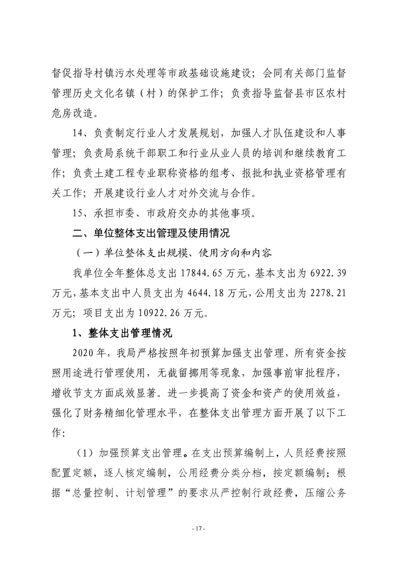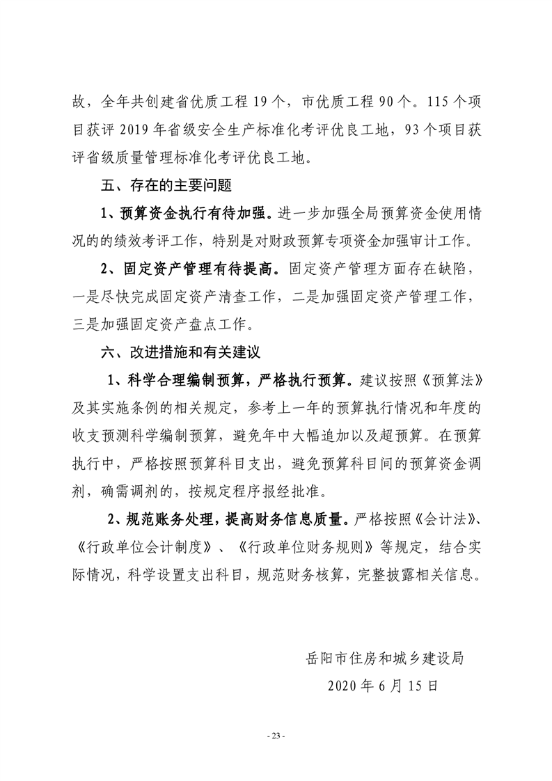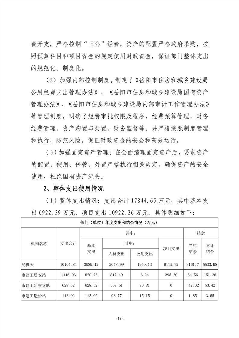 岳阳市住房和城乡建设局2020年度部门整体支出绩效评价自评报告