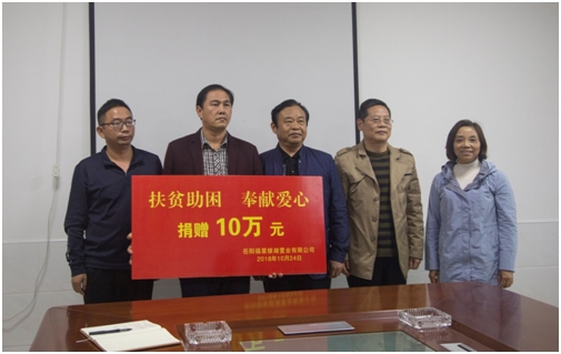 岳阳县麻塘办事处东风村由于村基础设施落后,集体经济薄弱,部分村民生活困难,为了让贫困户能收获喜悦,市住建局副局长晏桃保了解到实际情况后,带领工作人员以及岳阳福星银湖置业有限公司代表进村开展精准扶贫工作,捐赠10万元用于改善基础设施建设,帮助贫困家庭子女完成学业。